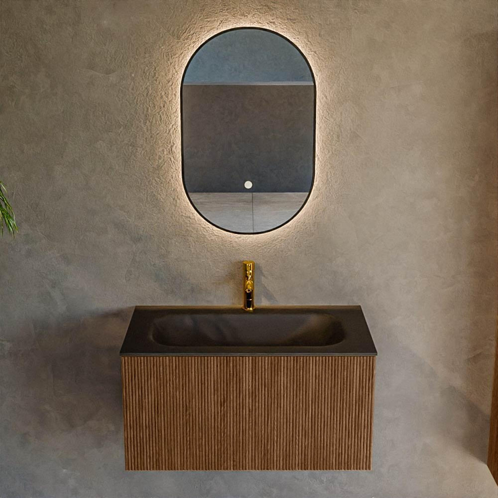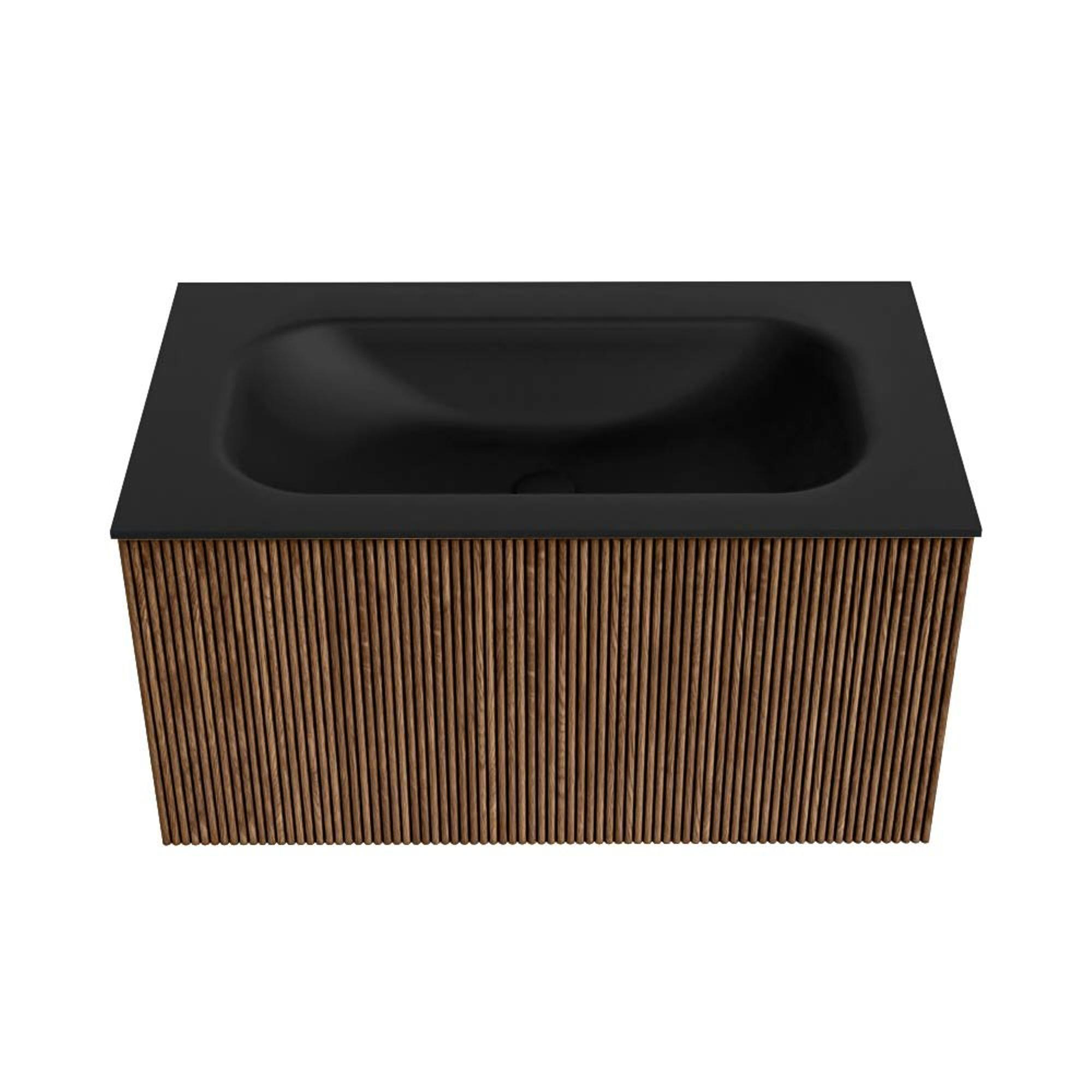 MONDIAZ KURVE 80cm badmeubel kleur Walnut met 1 lade. Wastafel BIG SMALL midden 1 kraangat Urban.