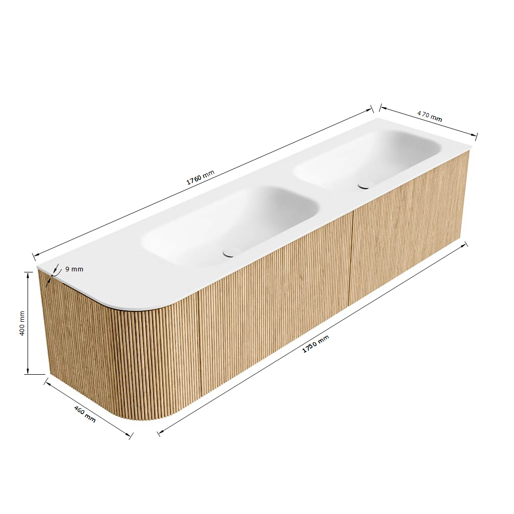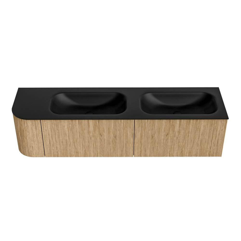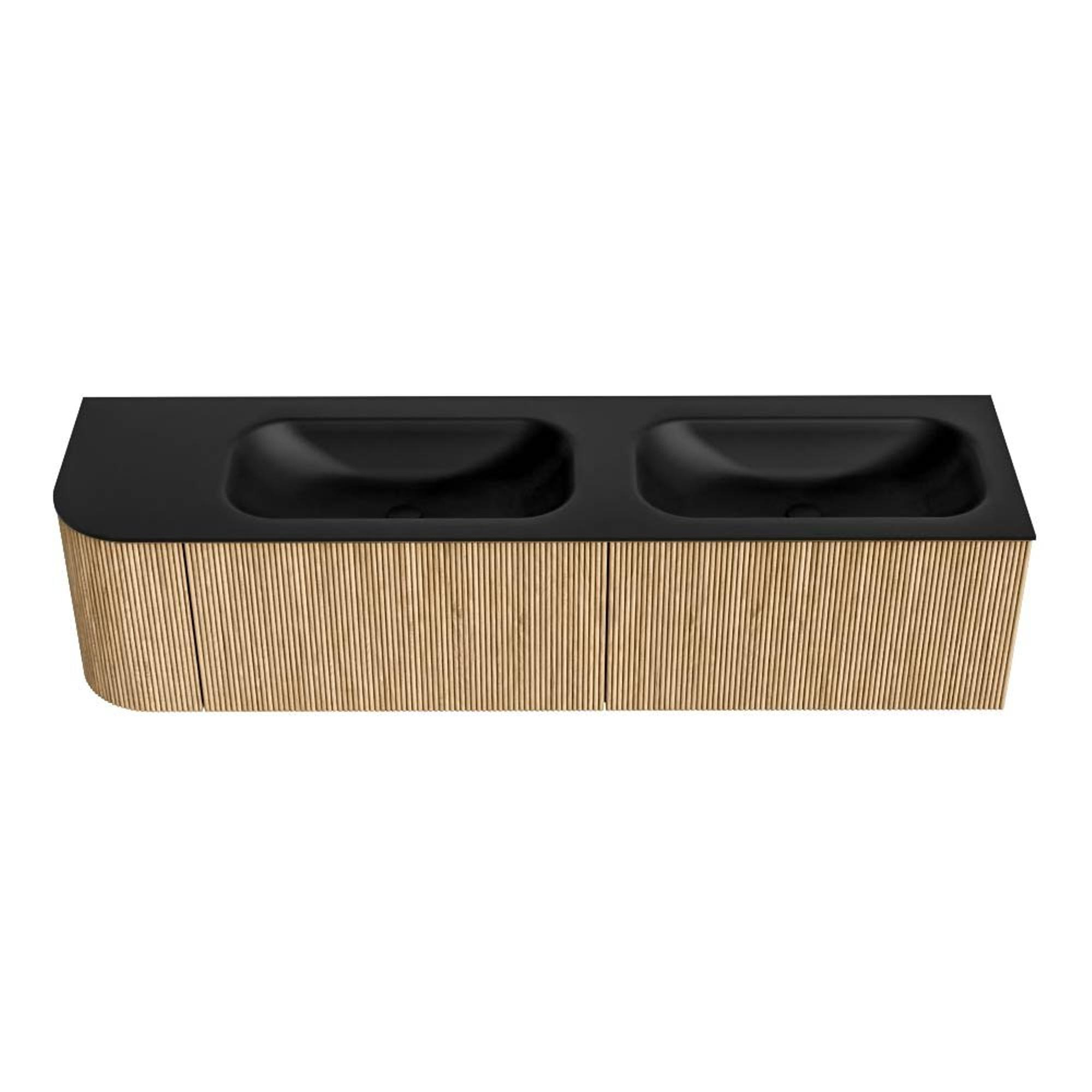 MONDIAZ KURVE 175cm badmeubel met module 25 L kleur Oak met 2 lades en 1 deur. Wastafel BIG SMALL dubbel / rechts 2 kraangaten Urban.