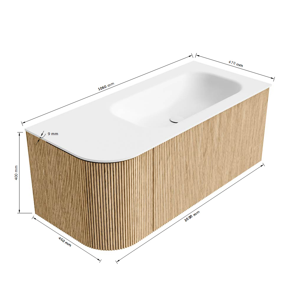 - Breedte wastafel: 106cm