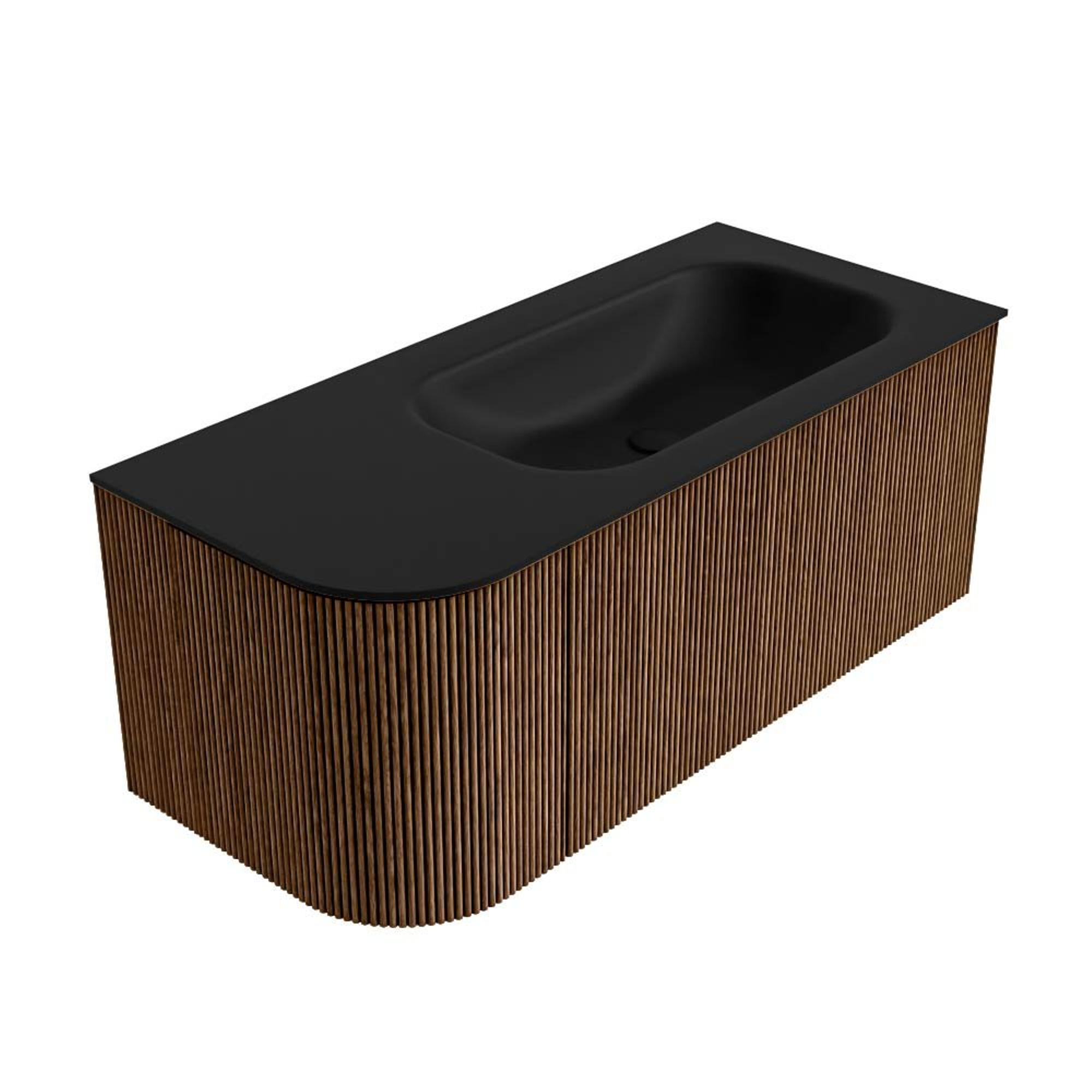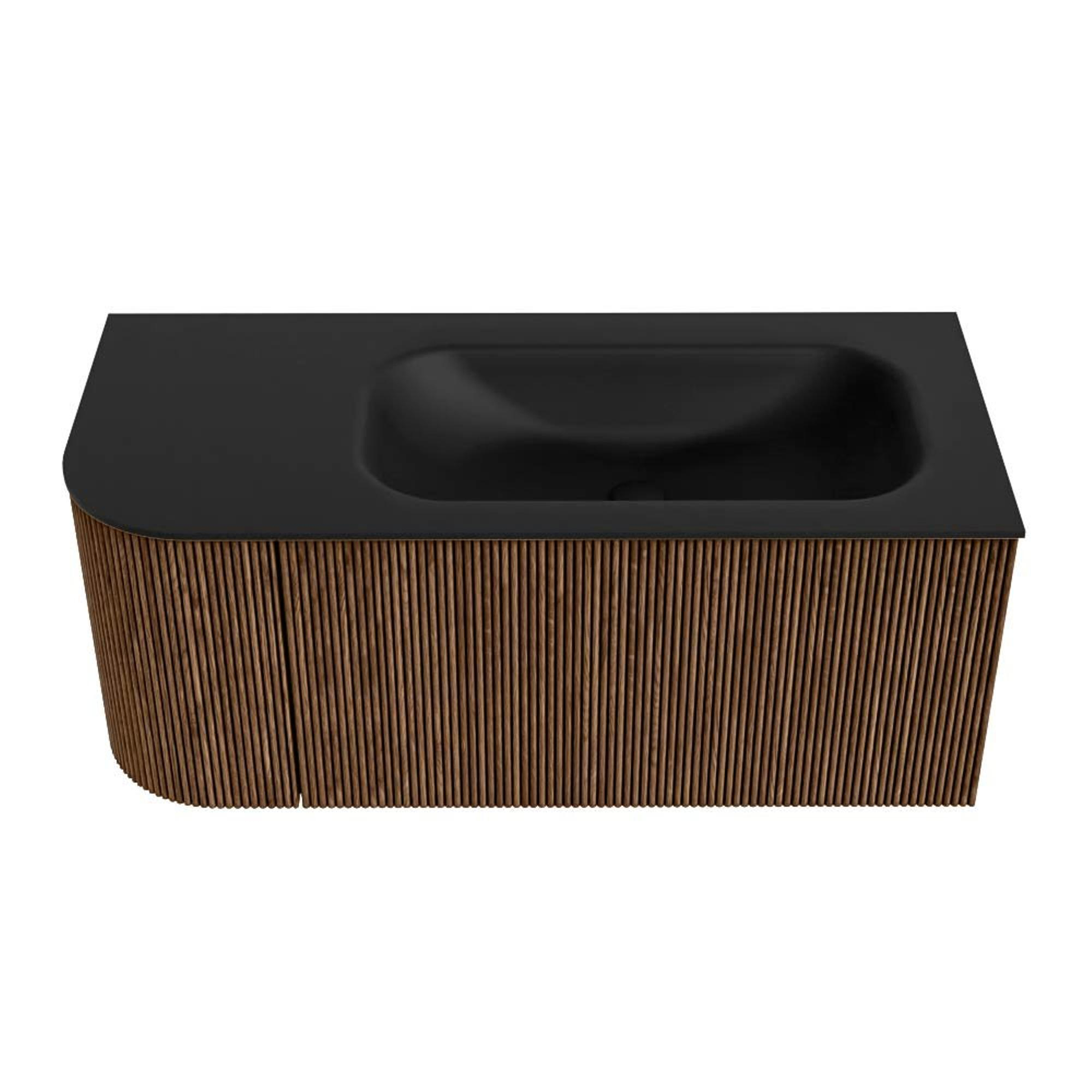MONDIAZ KURVE 105cm badmeubel met module 25 L kleur Walnut met 1 lade en 1 deur. Wastafel BIG SMALL rechts zonder kraangat Urban.