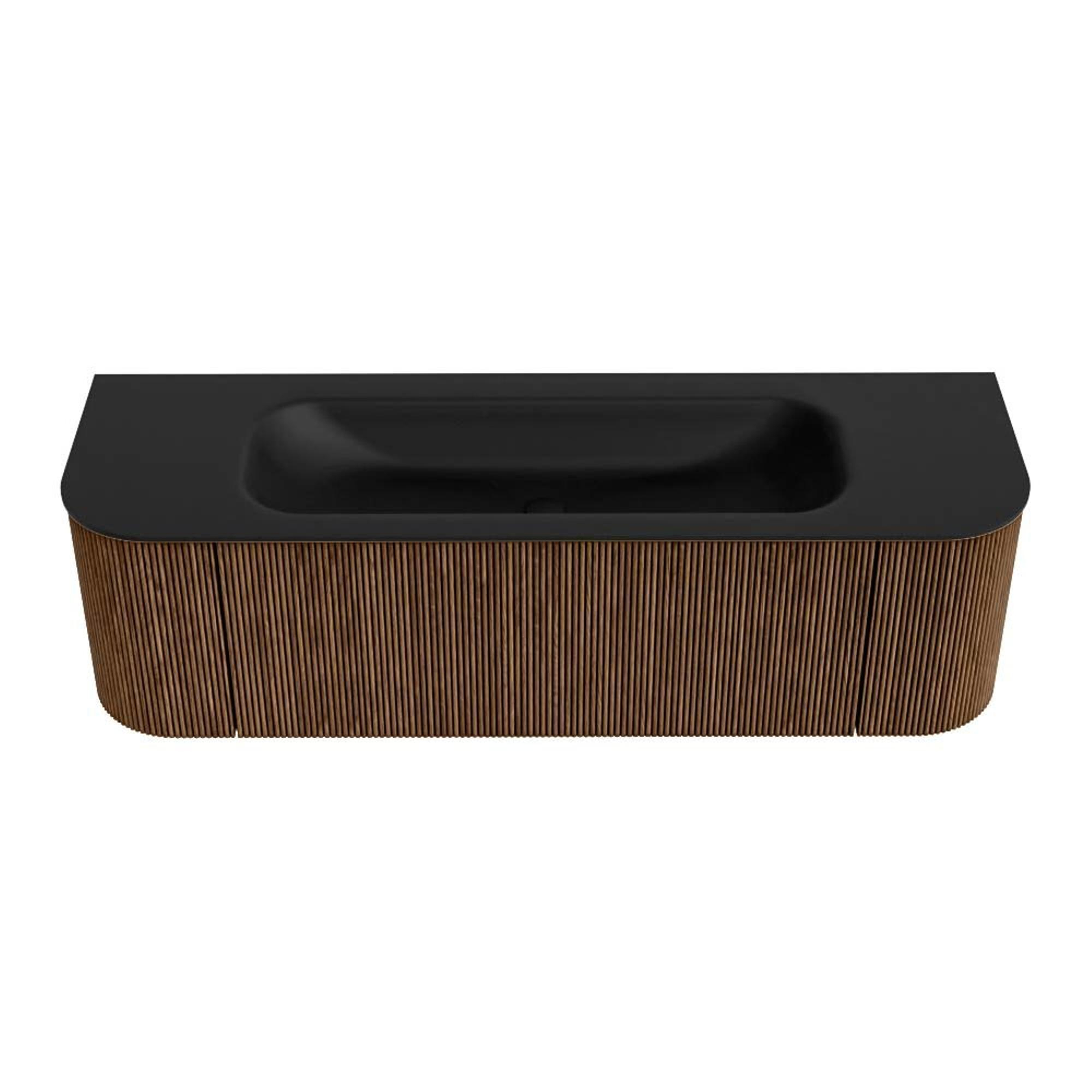MONDIAZ KURVE 150cm badmeubel met module 25 Len R kleur Walnut met 1 lade en 2 deuren. Wastafel BIG MEDIUM midden 1 kraangat Urban.