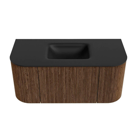 MONDIAZ KURVE 100cm badmeubel met module 25 Len R kleur Walnut met 1 lade en 2 deuren. Wastafel GRUNNE midden zonder kraangat Urban.