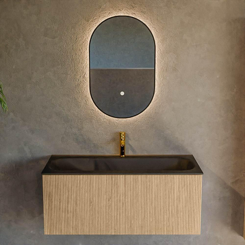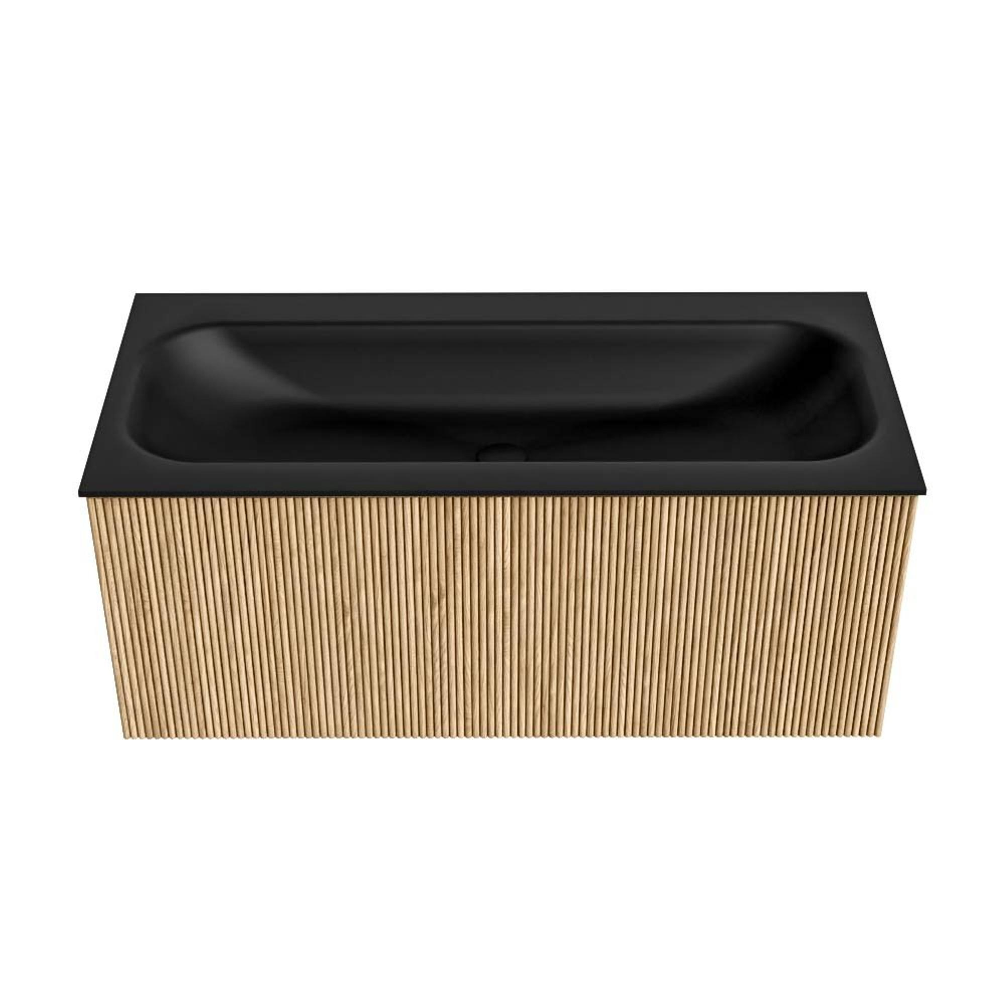 MONDIAZ KURVE 100cm badmeubel kleur Oak met 1 lade. Wastafel BIG MEDIUM midden 1 kraangat Urban.