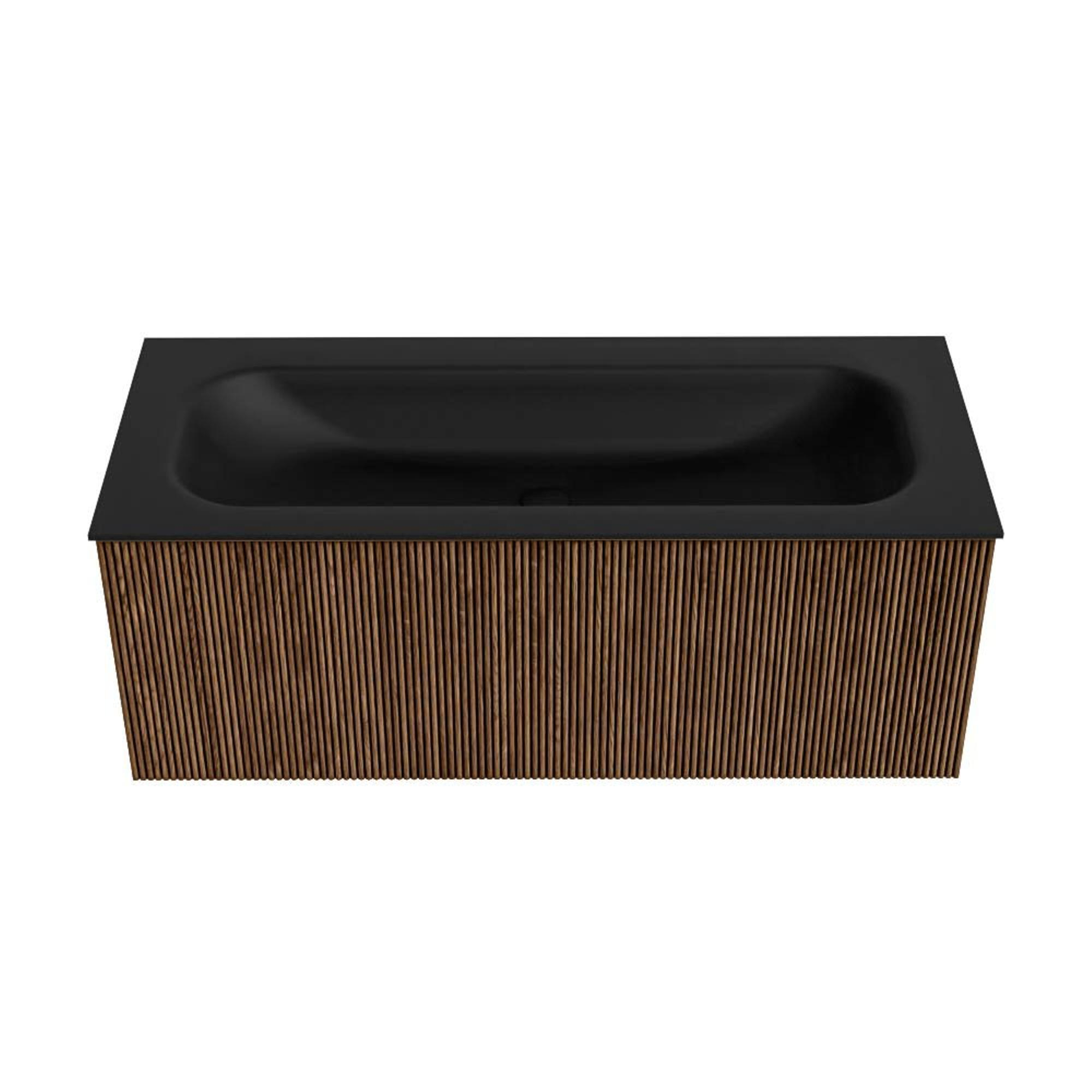 MONDIAZ KURVE 110cm badmeubel kleur Walnut met 1 lade. Wastafel BIG MEDIUM midden 1 kraangat Urban.