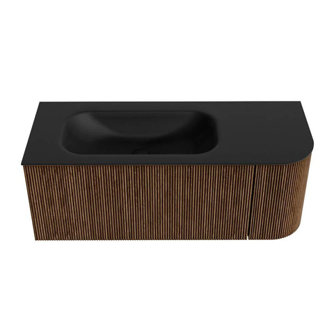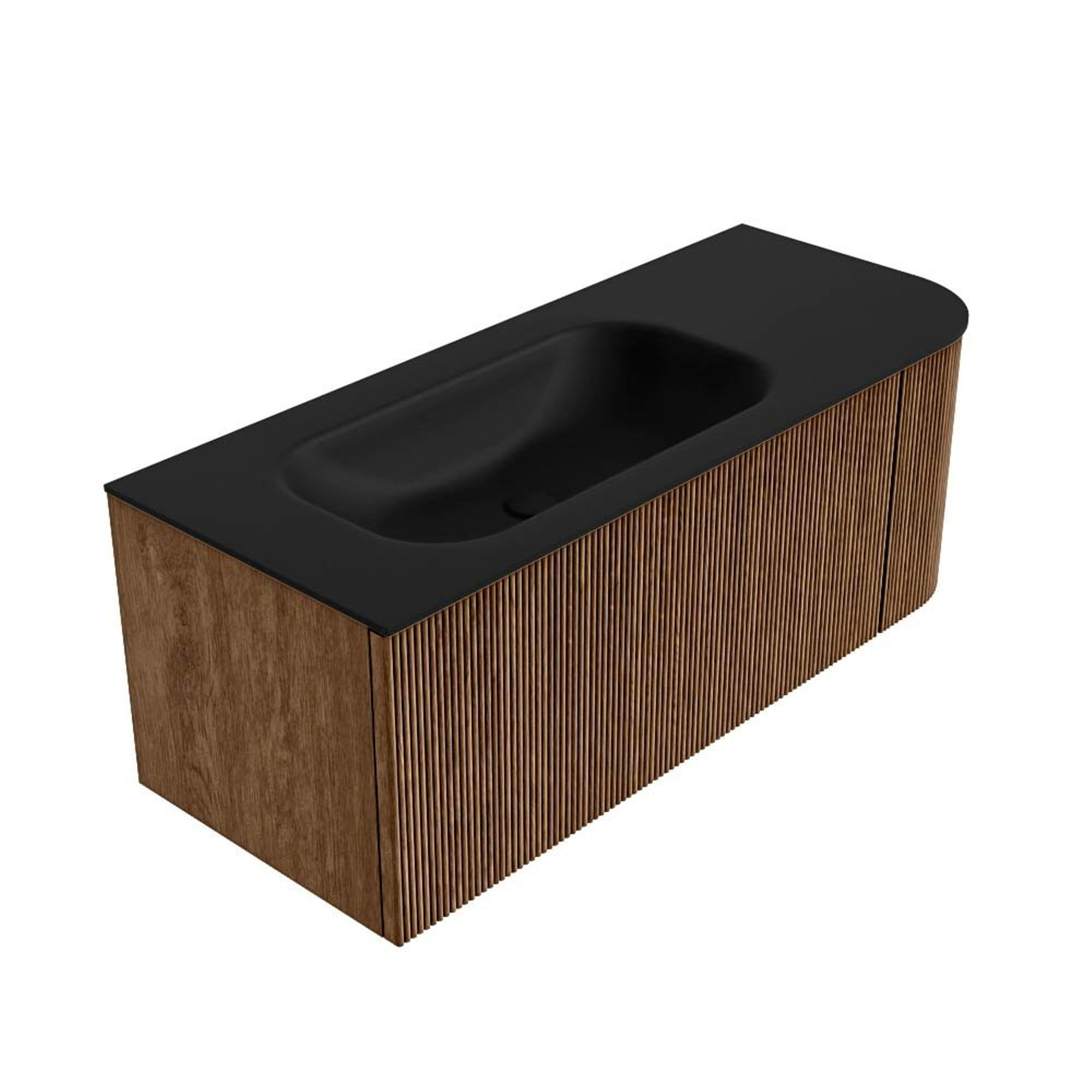 MONDIAZ KURVE 115cm badmeubel met module 25 R kleur Walnut met 1 lade en 1 deur. Wastafel BIG SMALL links 1 kraangat Urban.