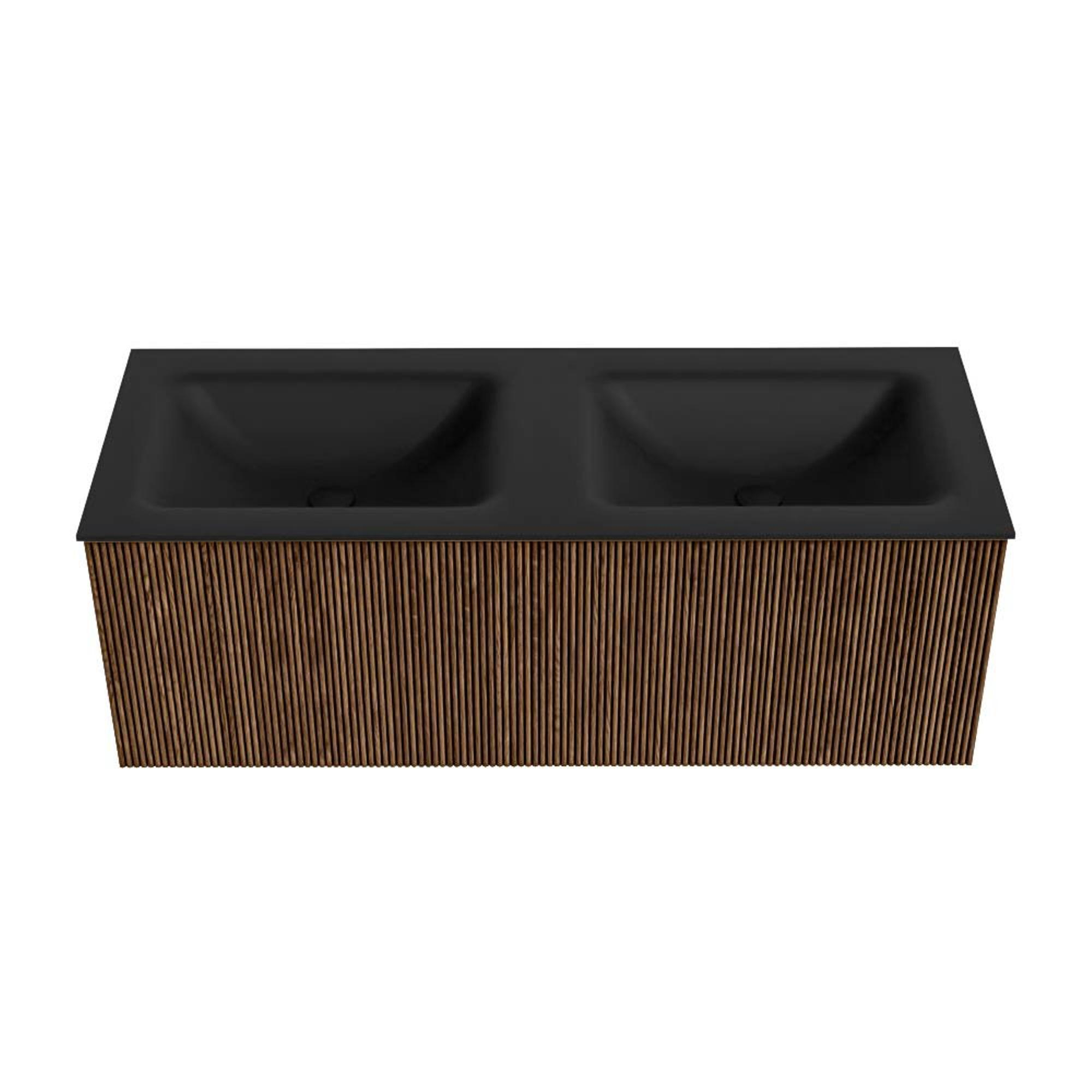 MONDIAZ KURVE 120cm badmeubel kleur Walnut met 1 lade. Wastafel CLOUD dubbel 2 kraangaten Urban.