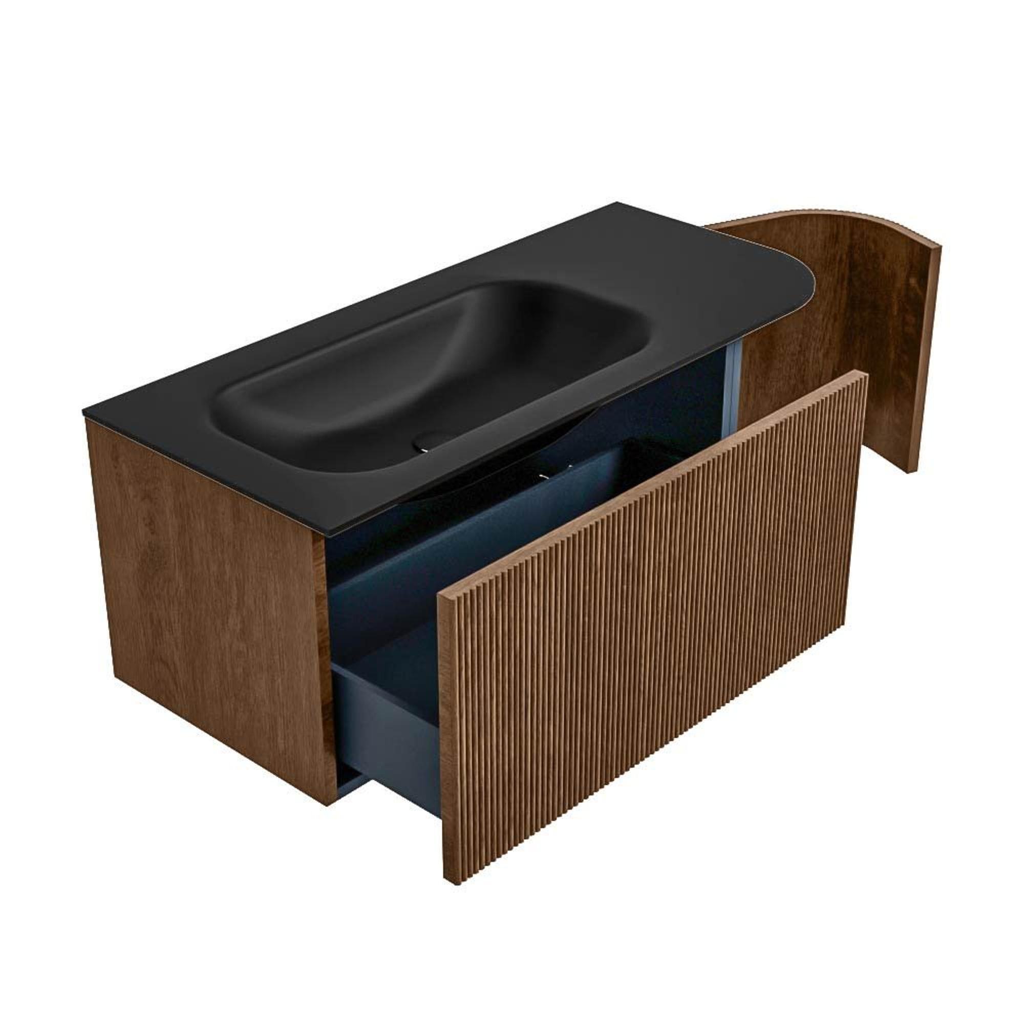 MONDIAZ KURVE 105cm badmeubel met module 25 R kleur Walnut met 1 lade en 1 deur. Wastafel BIG SMALL links zonder kraangat Urban.