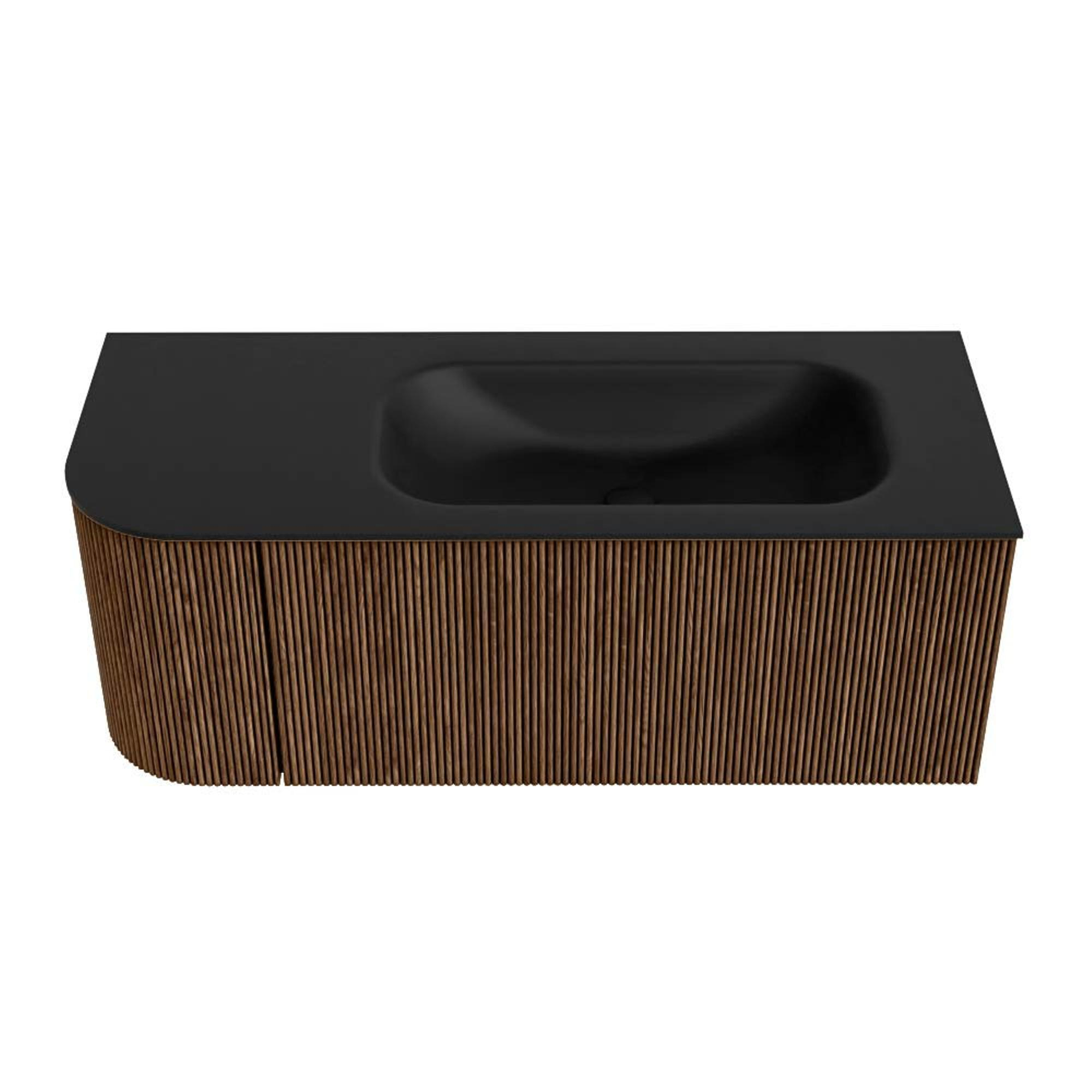 MONDIAZ KURVE 115cm badmeubel met module 25 L kleur Walnut met 1 lade en 1 deur. Wastafel BIG SMALL rechts 1 kraangat Urban.