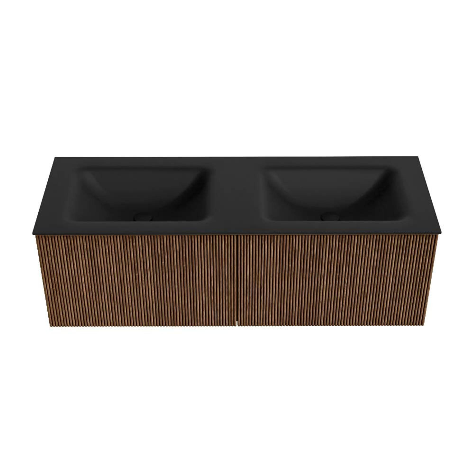 MONDIAZ KURVE 130cm badmeubel kleur Walnut met 2 lades. Wastafel CLOUD dubbel 2 kraangaten Urban.