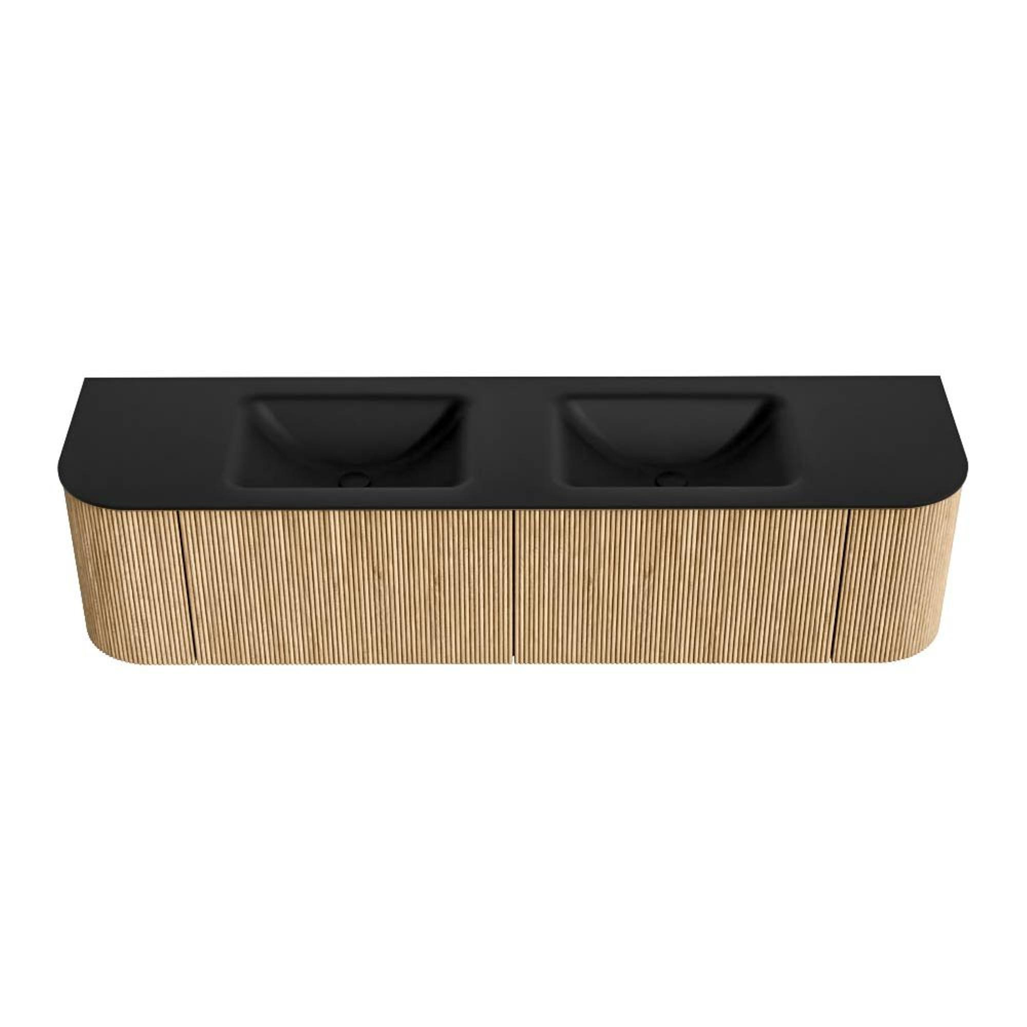 MONDIAZ KURVE 180cm badmeubel met module 25 Len R kleur Oak met 2 lades en 2 deuren. Wastafel CLOUD dubbel 2 kraangaten Urban.