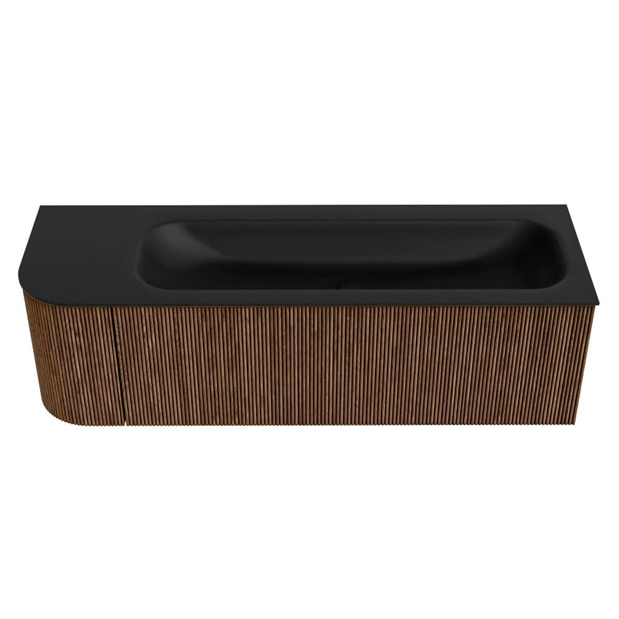MONDIAZ KURVE 145cm badmeubel met module 25 L kleur Walnut met 1 lade en 1 deur. Wastafel BIG LARGE rechts zonder kraangat Urban.