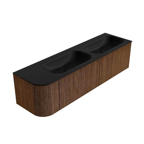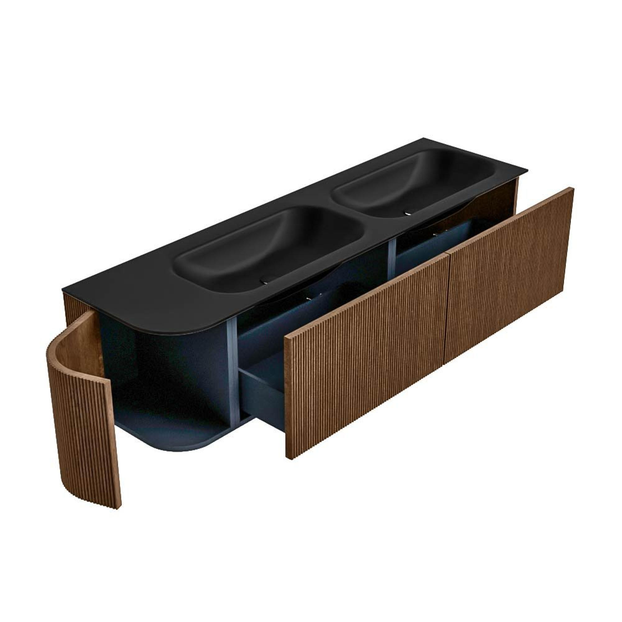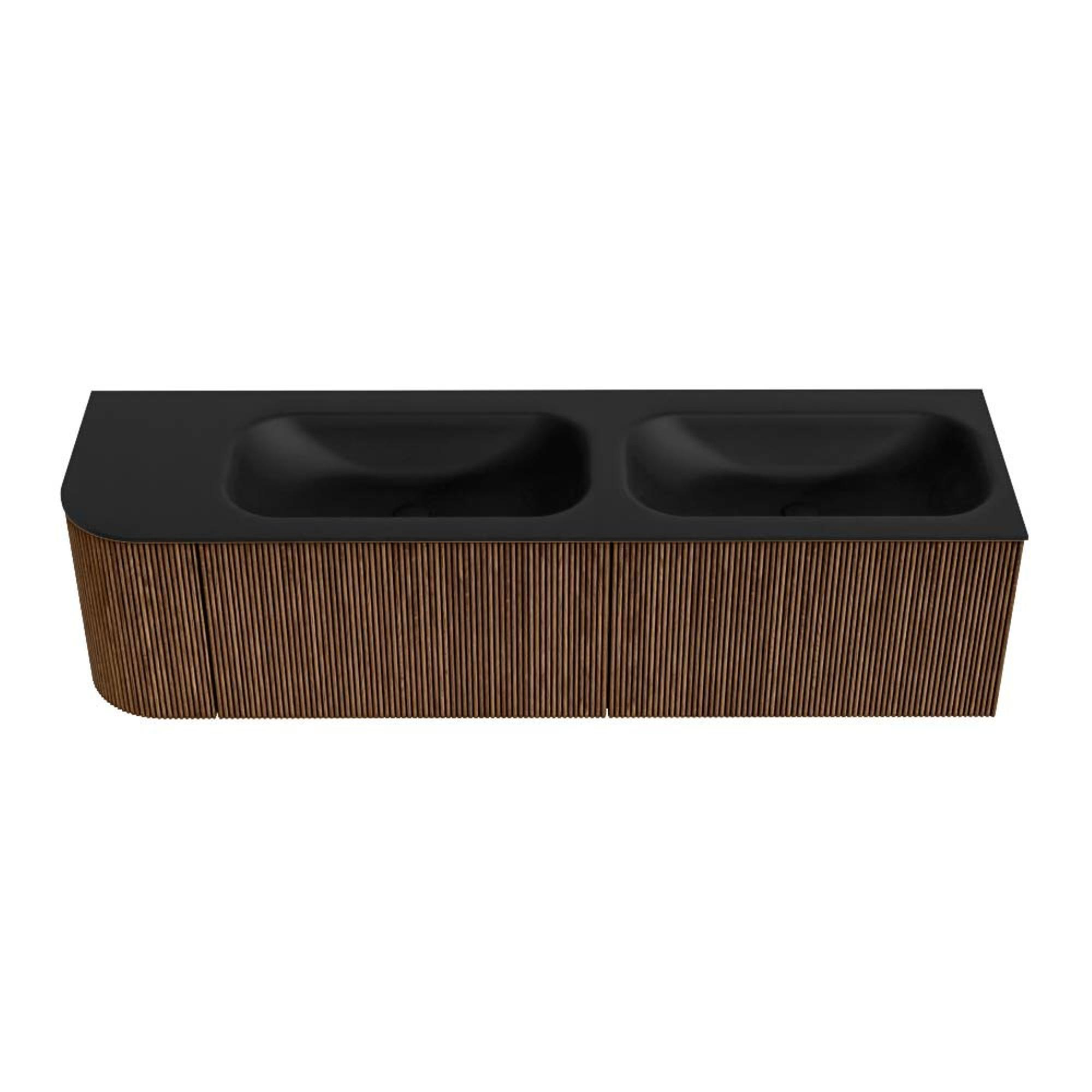 MONDIAZ KURVE 165cm badmeubel met module 25 L kleur Walnut met 2 lades en 1 deur. Wastafel BIG SMALL dubbel / rechts zonder kraangat Urban.