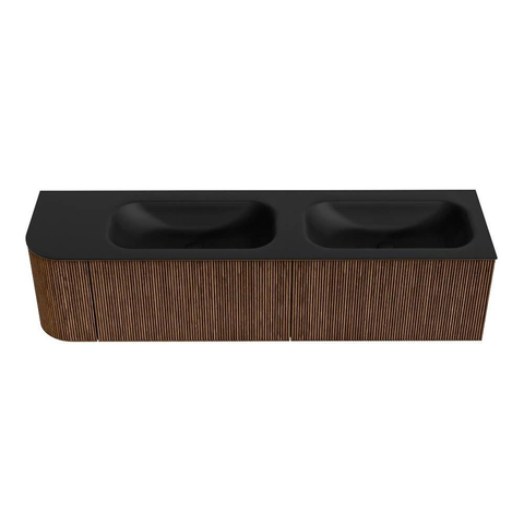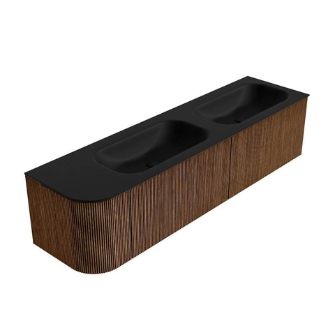 MONDIAZ KURVE 175cm badmeubel met module 25 L kleur Walnut met 2 lades en 1 deur. Wastafel BIG SMALL dubbel / rechts zonder kraangat Urban.