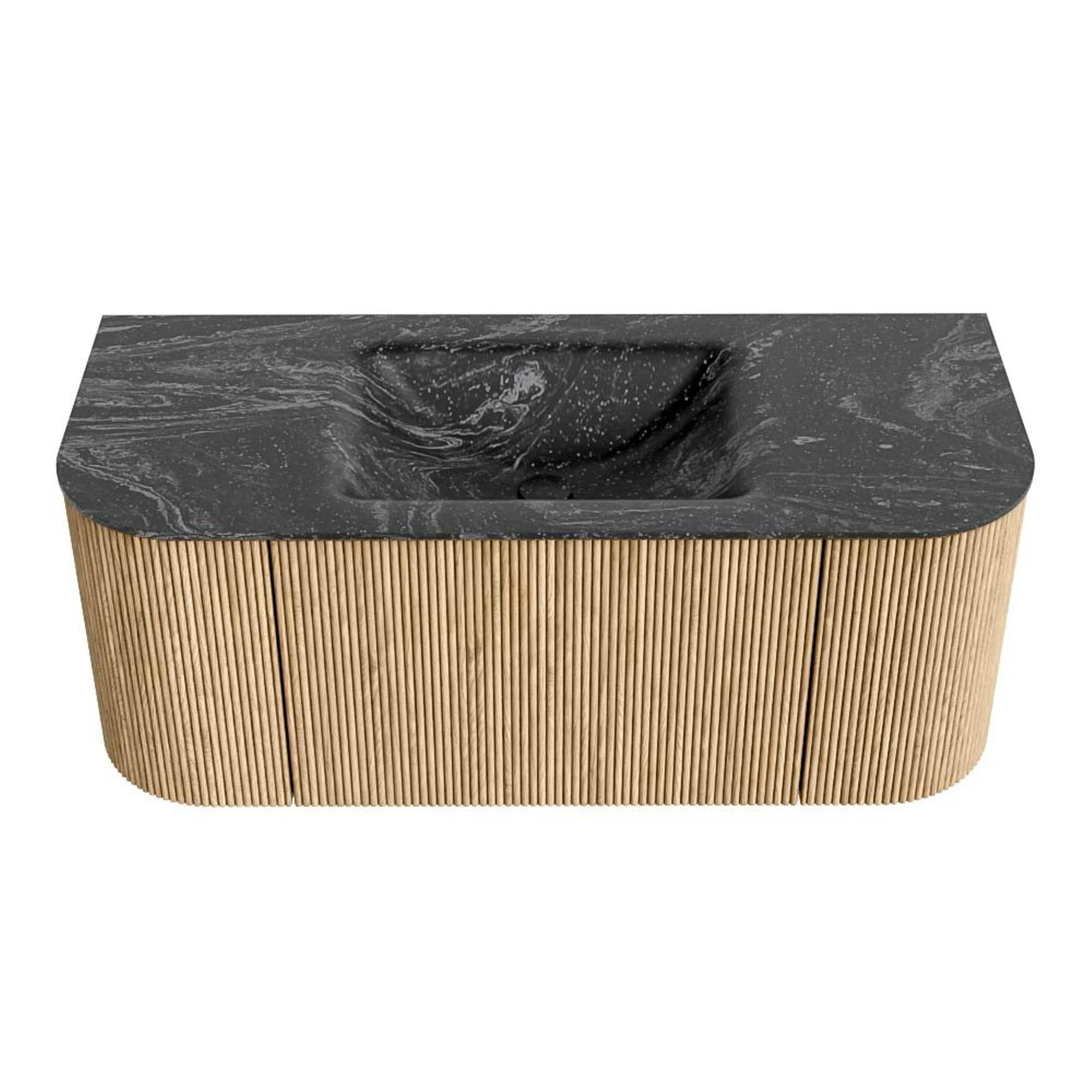 MONDIAZ KURVE-DLUX 110cm badmeubel met module 25 Len R kleur Oak met 1 lade en 2 deuren. Wastafel CLOUD midden 1 kraangat kleur Lava.