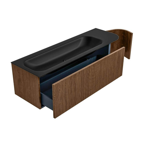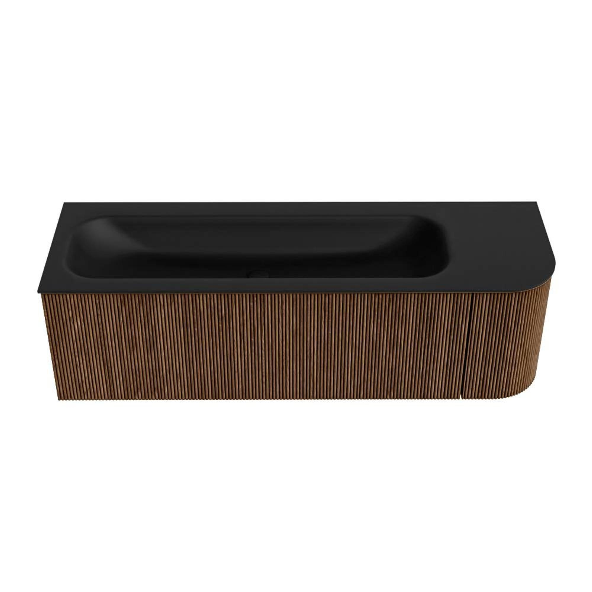 MONDIAZ KURVE 145cm badmeubel met module 25 R kleur Walnut met 1 lade en 1 deur. Wastafel BIG LARGE links 2 kraangaten Urban.