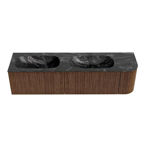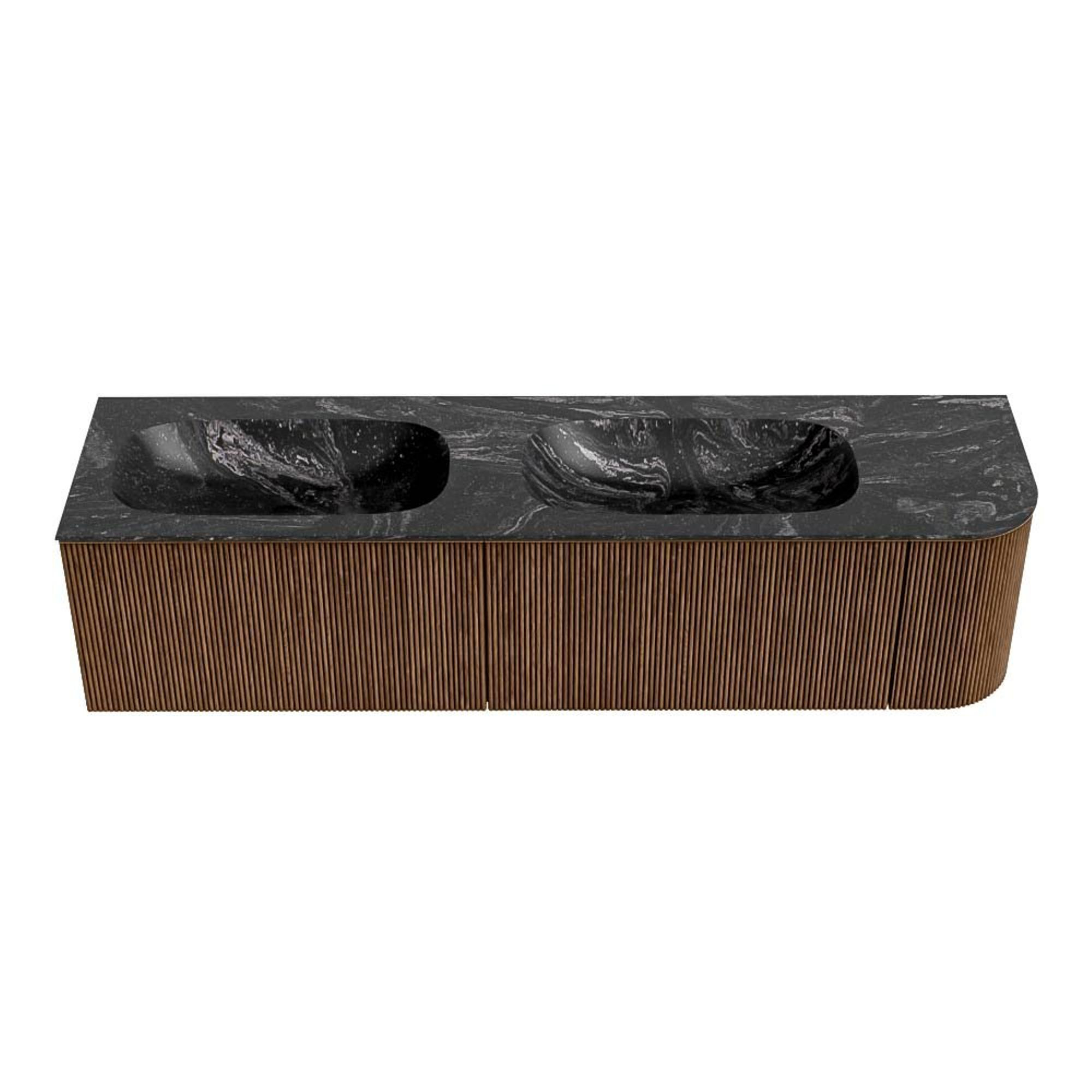 MONDIAZ KURVE-DLUX 175cm badmeubel met module 25 R kleur Walnut met 2 lades en 1 deur. Wastafel STOR SMALL dubbel / links zonder kraangat kleur Lava.