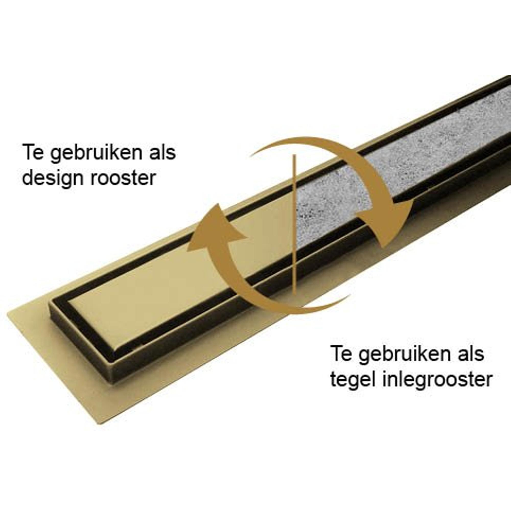 Wiesbaden Douchegoot met tegelrooster en flens 100 x 7 cm geborsteld messing
