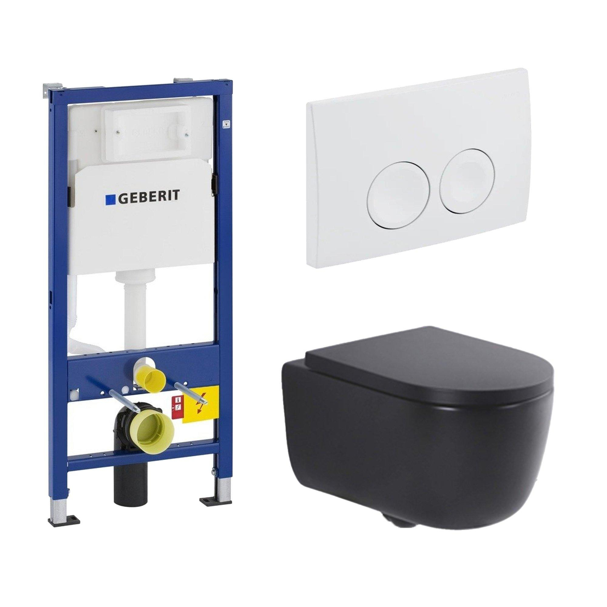 QeramiQ Dely Swirl Toiletset - 36.5x53cm - Geberit UP100 inbouwreservoir - 35mm zitting - witte bedieningsplaat - ronde knoppen - mat zwart