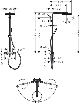Hansgrohe Pulsify S Puro Thermostatische Regendoucheset - 26cm - ronde hoofddouche - staafhanddouche - chroom
