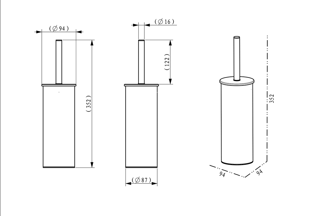 Wiesbaden Alonzo vrijstaande toiletborstel met houder mat zwart