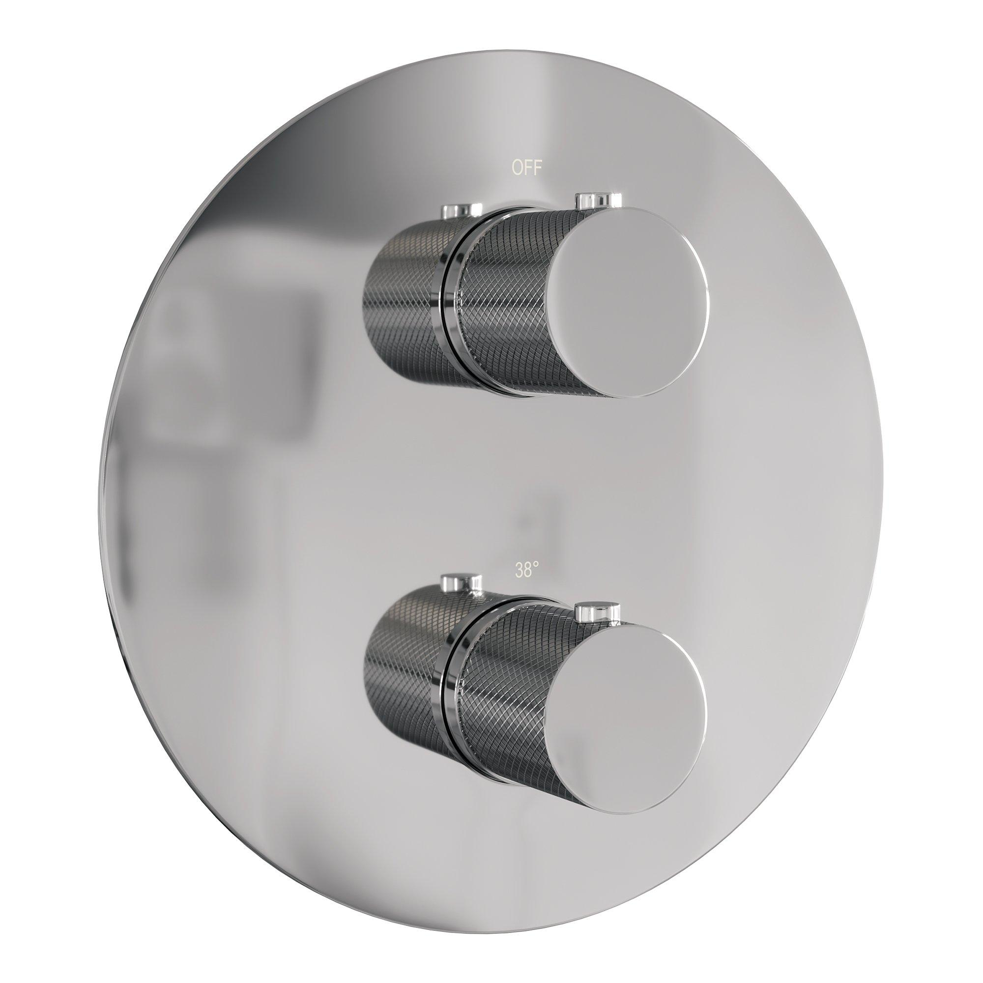 BRAUER Chrome Carving thermostatische Inbouw Regendouche - 3-weg - rond - set 94 - 30cm hoofddouche - gebogen muurarm - 3-standen handdouche - doucheslang - geïntegreerde glijstang - chroom