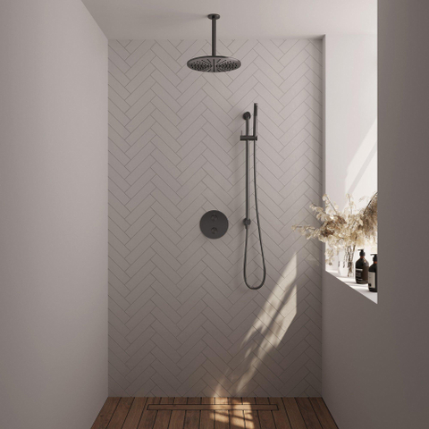 De BRAUER Gunmetal Edition thermostatische Inbouw Regendouche is een prachtig ontworpen doucheset die een vleugje luxe toevoegt aan elke badkamer. Met zijn gunmetal geborsteld PVD afwerking straalt dit product elegantie en stijl uit. De set bestaat uit een 3-weg thermostaatkraan, een ronde 30cm hoofddouche met plafondarm, een staaf handdouche, en een geïntegreerde glijstang. Geniet van een ontspannende douche-ervaring met deze hoogwaardige regendouche set.