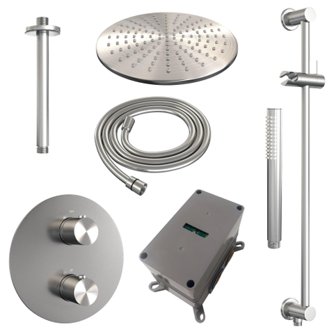 BRAUER Brushed Edition thermostatische Inbouw Regendouche - 3-weg - rond - set 90 - 30cm hoofddouche - plafondarm - staaf handdouche - doucheslang - geïntegreerde glijstang - RVS geborsteld PVD