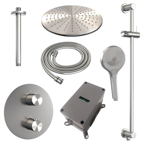 BRAUER Brushed Edition thermostatische Inbouw Regendouche - 3-weg - rond - set 96 - 30cm hoofddouche - plafondarm - 3-standen handdouche - doucheslang - geïntegreerde glijstang - RVS geborsteld PVD