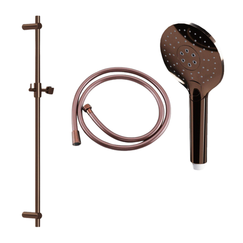 Fortifura Calvi glijstangset met ronde handdouche, gladde doucheslang Geborsteld koper PVD (Koper)