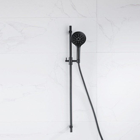 Fortifura Calvi glijstangset met ronde handdouche, gladde doucheslang mat zwart