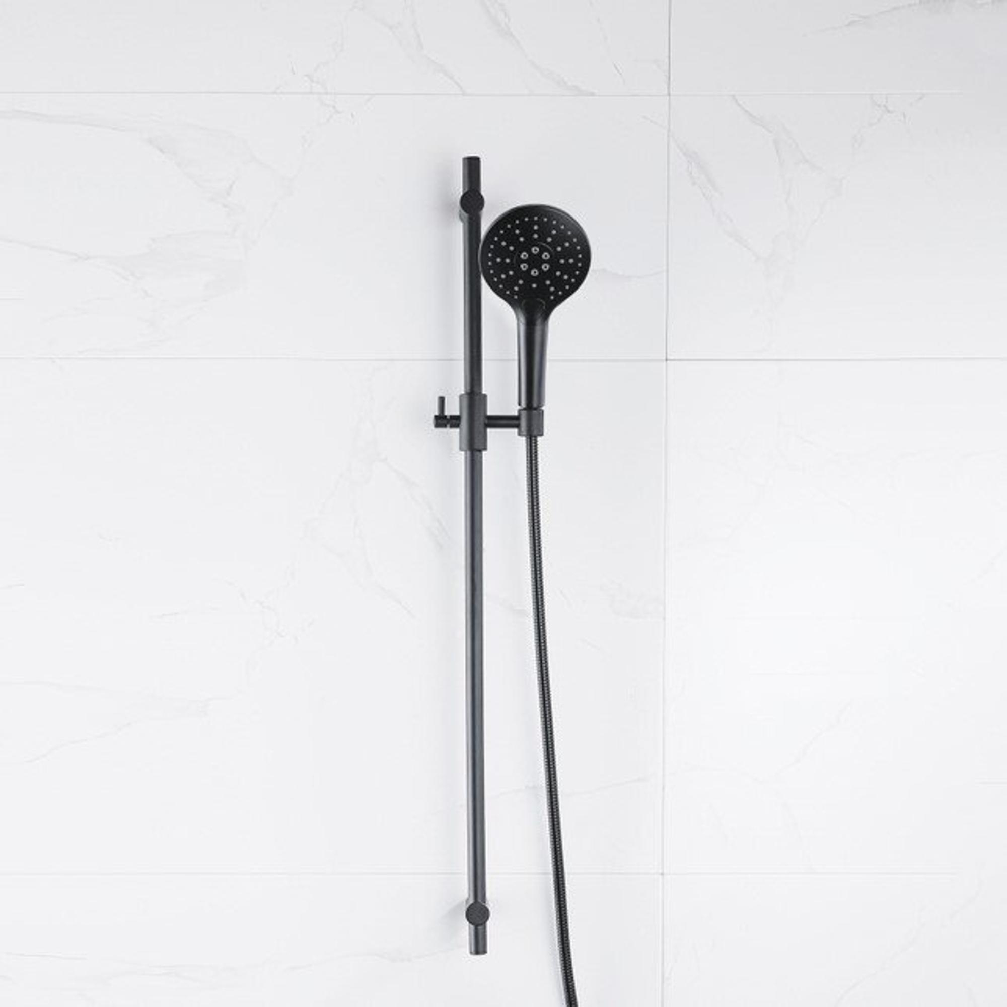 Fortifura Calvi glijstangset met ronde handdouche, metalen doucheslang mat zwart