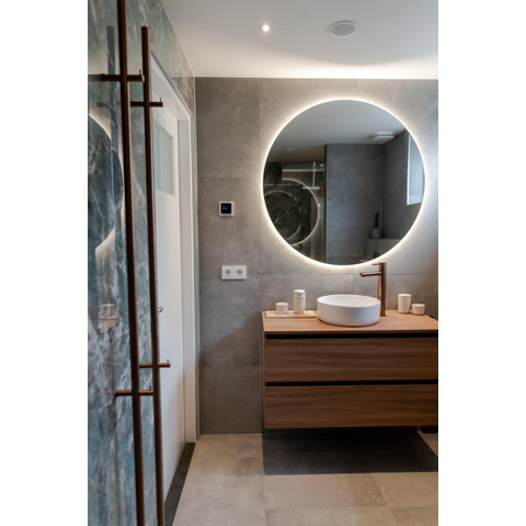 De Adema Circle Badkamerspiegel straalt luxe uit in elk detail, van de hoogwaardige materialen tot de doordachte functionaliteiten. De spiegelverwarming zorgt ervoor dat de spiegel altijd helder blijft, zelfs tijdens stoomrijke douches. De infrarood schakelaar voegt een vleugje luxe toe door het gemakkelijk aanpassen van de verlichting met een simpele aanraking. Deze spiegel is een symbool van comfort en verfijning, waardoor elke badkamer een exclusieve uitstraling krijgt.