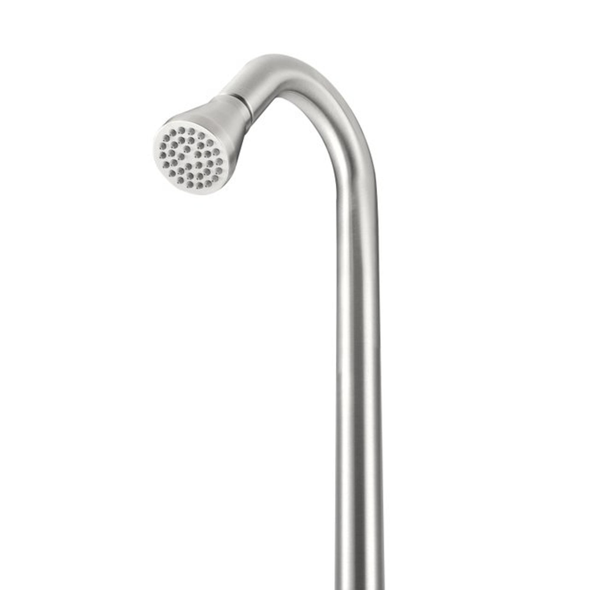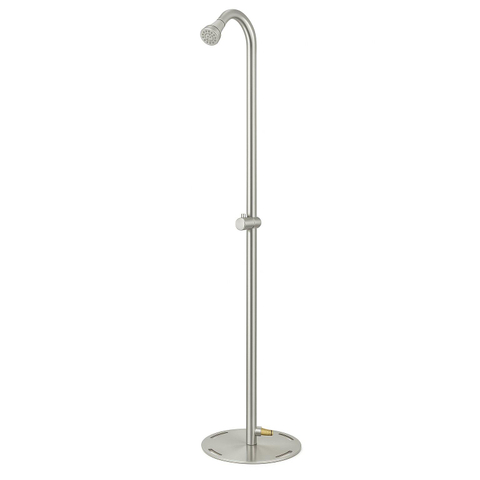 Met een geborstelde afwerking past de douche naadloos in elke buitenomgeving, van moderne tot meer traditionele tuinen. Het minimalistische ontwerp zorgt niet alleen voor een visuele aantrekkingskracht, maar is ook eenvoudig te onderhouden.