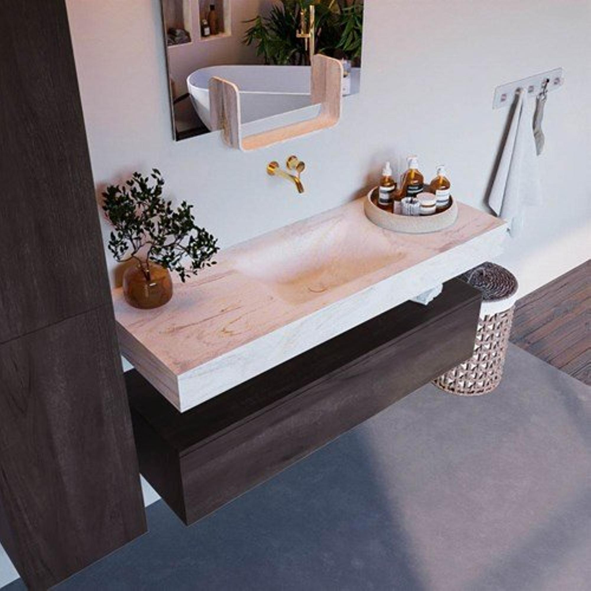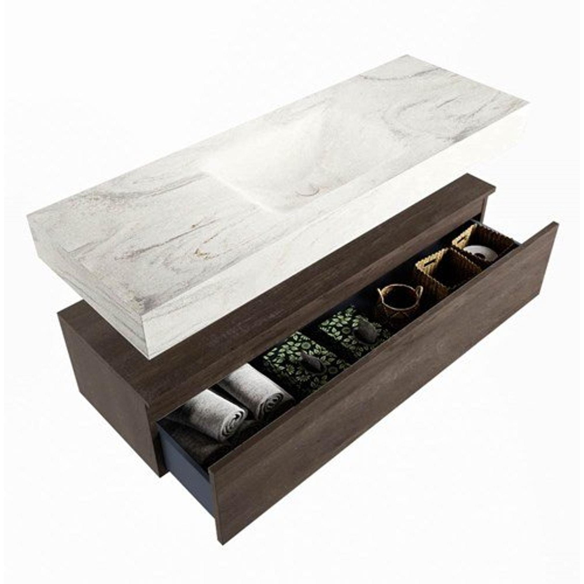 MONDIAZ ALAN - DLUX Badkamermeubelset - 130cm - onderkast - Dark Brown - 1 lade - vrijhangende wastafel - wasbak midden - 0 kraangaten - Ostra