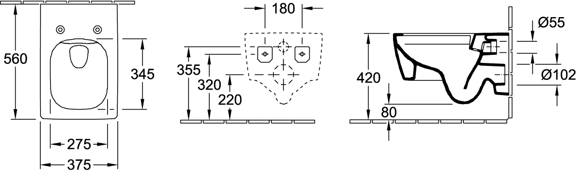 Villeroy & boch Memento 2.0 wandcloset 56cm z/spoelrand C + p.black