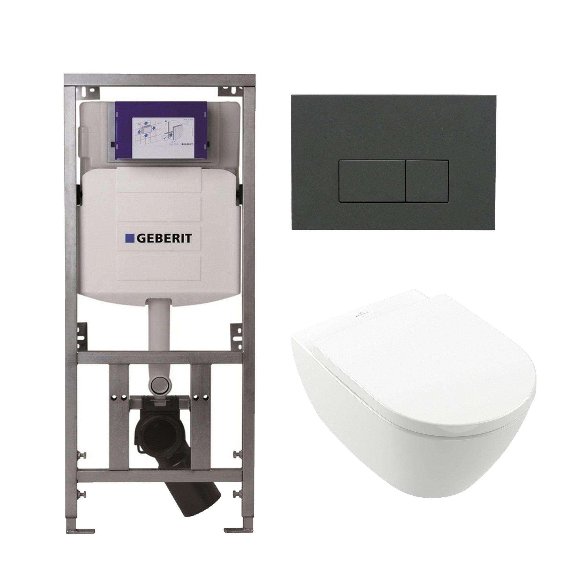 Villeroy Boch Subway 2.0 DirectFlush Toiletset - geberit reservoir - bedieningsplaat rechthoekige knoppen antracit mat - softclose - wit