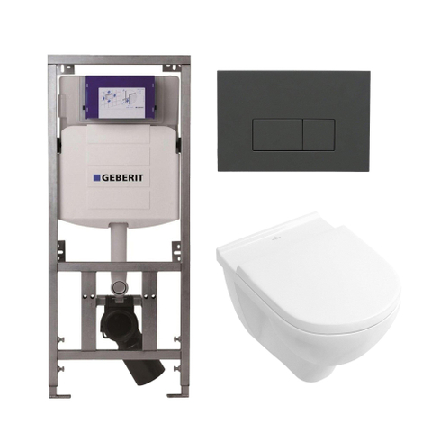 Villeroy & Boch O.novo Toiletset - Geberit inbouwreservoir - diepspoel wandcloset - softclose - bedieningsplaat bedieningsplaat antraciet mat - rechthoekige knoppen - wit