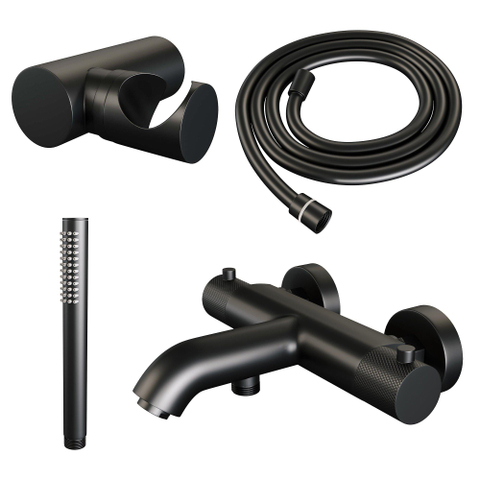 Brauer Black Carving Badkraan opbouw - douchegarnituur - 2 functies - 2 carving knoppen - handdouche Staaf 1 stand - mat zwart