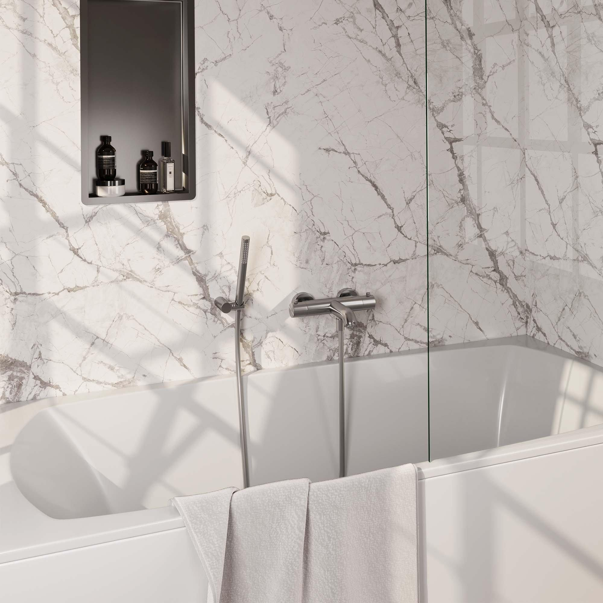 De Brauer Brushed Edition Badkraan onderscheidt zich door zijn moderne ontwerp en strakke lijnen. Het gladde oppervlak en de minimalistische vormgeving passen perfect in eigentijdse badkamers. De PVD-coating zorgt voor duurzaamheid en een langdurige glans, waardoor dit product een tijdloze toevoeging is aan elke badkamer.