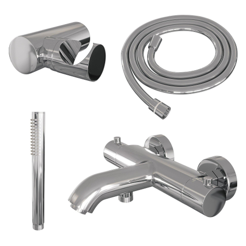 Brauer Chrome Edition Badkraan - douchegarnituur - handdouche staaf 1 stand - gladde knop - chroom