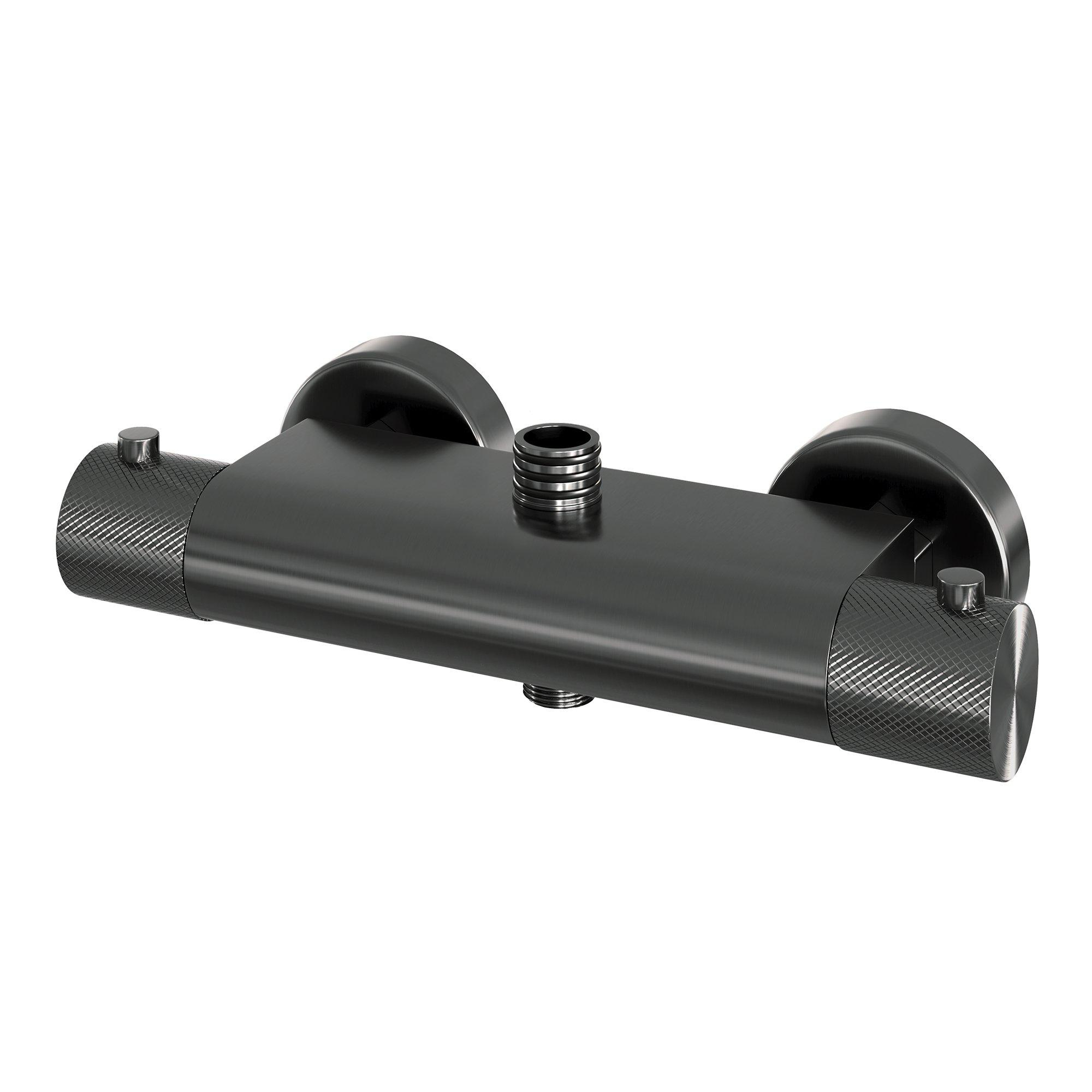 De Brauer Gunmetal Carving Regendoucheset opbouw straalt stijl en elegantie uit. Het gunmetal geborstelde afwerking geeft een moderne en luxueuze uitstraling aan de set. De carving knoppen voegen een uniek en verfijnd element toe aan het ontwerp. Deze doucheset is perfect voor wie op zoek is naar een eigentijdse en chique uitstraling in de badkamer.