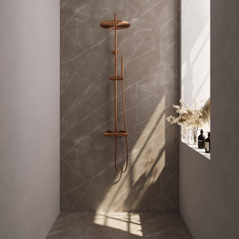 Brauer Copper Carving Regendoucheset opbouw - hoofddouche 30cm - glijstang - handdouche staaf 1 stand - carving knoppen - PVD - geborsteld koper