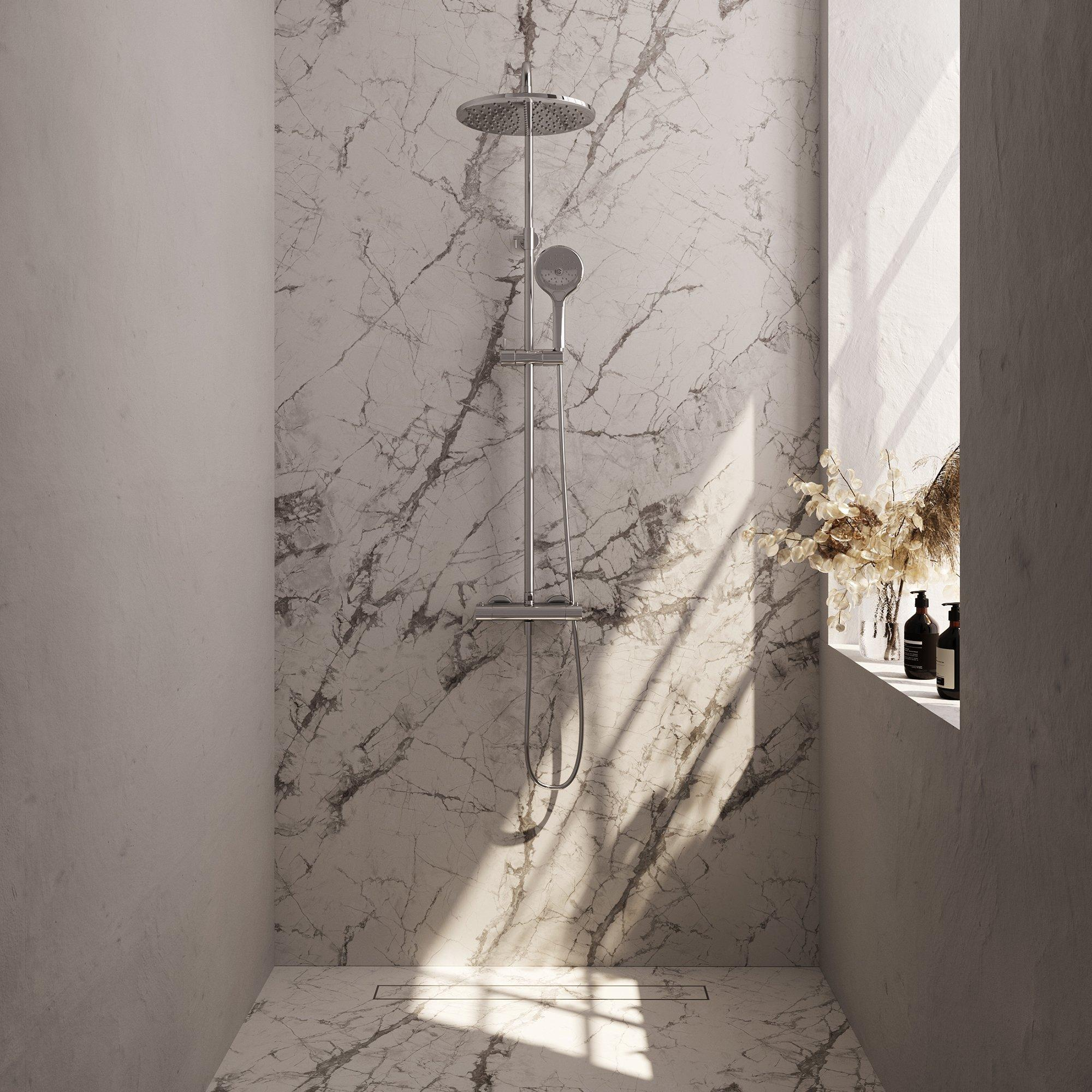 De Brauer Chrome Edition Regendoucheset opbouw straalt een onmiskenbare elegantie uit. De chroomafwerking geeft een glanzende, luxe uitstraling aan de set en voegt een vleugje verfijning toe aan de badkamer. De ronde vormen en zorgvuldig ontworpen details maken van deze set een blikvanger in de ruimte, waardoor je dagelijkse douche-ervaring een stijlvolle upgrade krijgt.