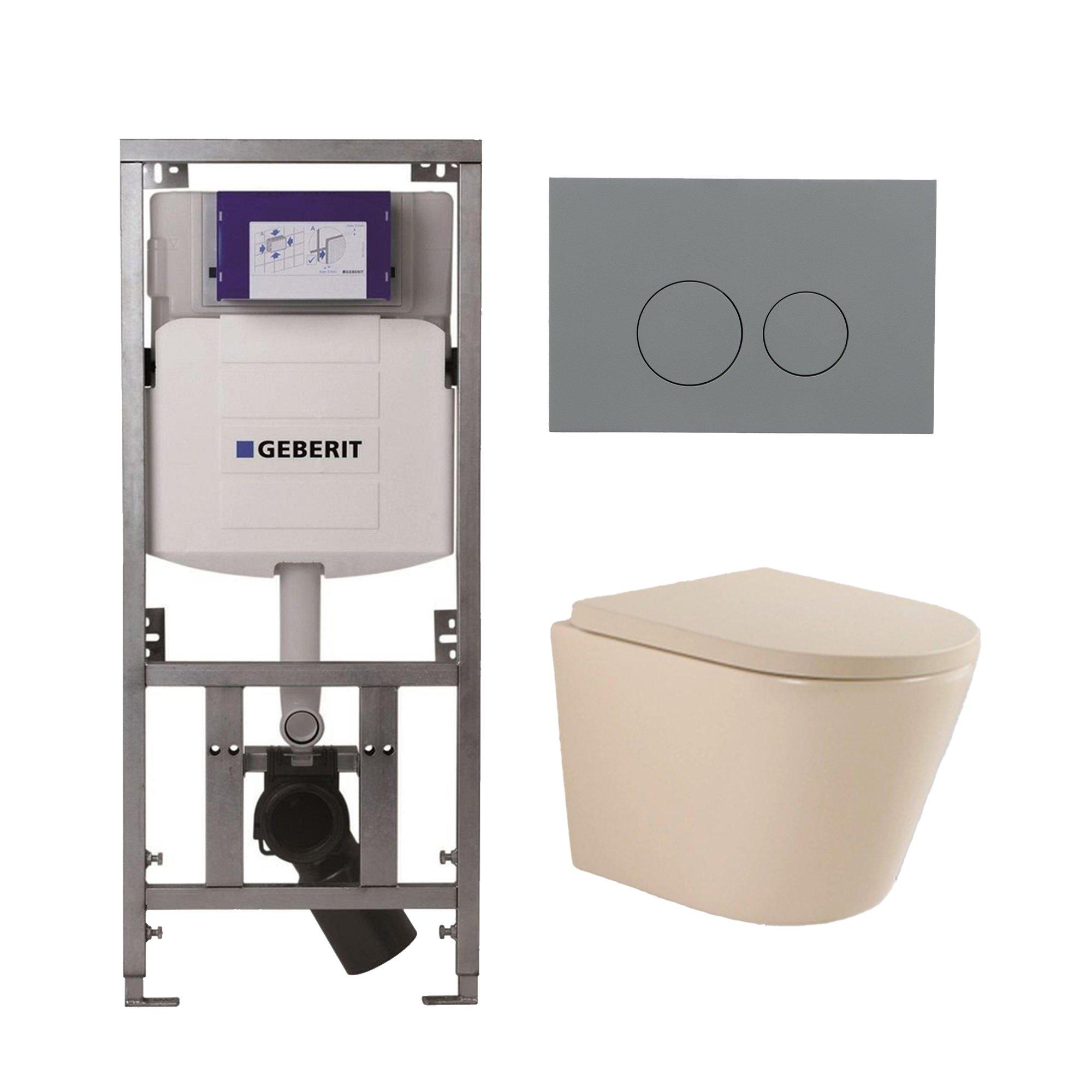 QeramiQ Dely Swirl Toiletset - 36.3x51.7cm - Geberit UP320 inbouwreservoir - 35mm zitting - licht grijze bedieningsplaat - ronde knoppen - beige