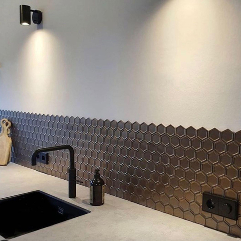 The Mosaic Factory Barcelona mozaïektegel - 28.2x32.1cm - wandtegel - Zeshoek/Hexagon - Porselein Bronze Metallic TWEEDEKANS
