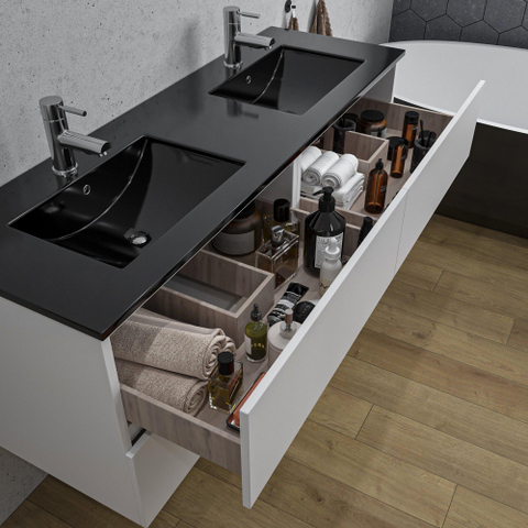 De onderkast is perfect te combineren met wastafelbladen uit de Chaci of Night serie van Adema. Deze keramische bladen hebben een glad oppervlak waardoor het materiaal minder gevoelig is voor vlekken. Hierdoor is het blad eenvoudig te onderhouden. Ook zou je deze onderkast prima kunnen combineren met een bijpassend topblad, zodat je hierop een waskom kan plaatsen.