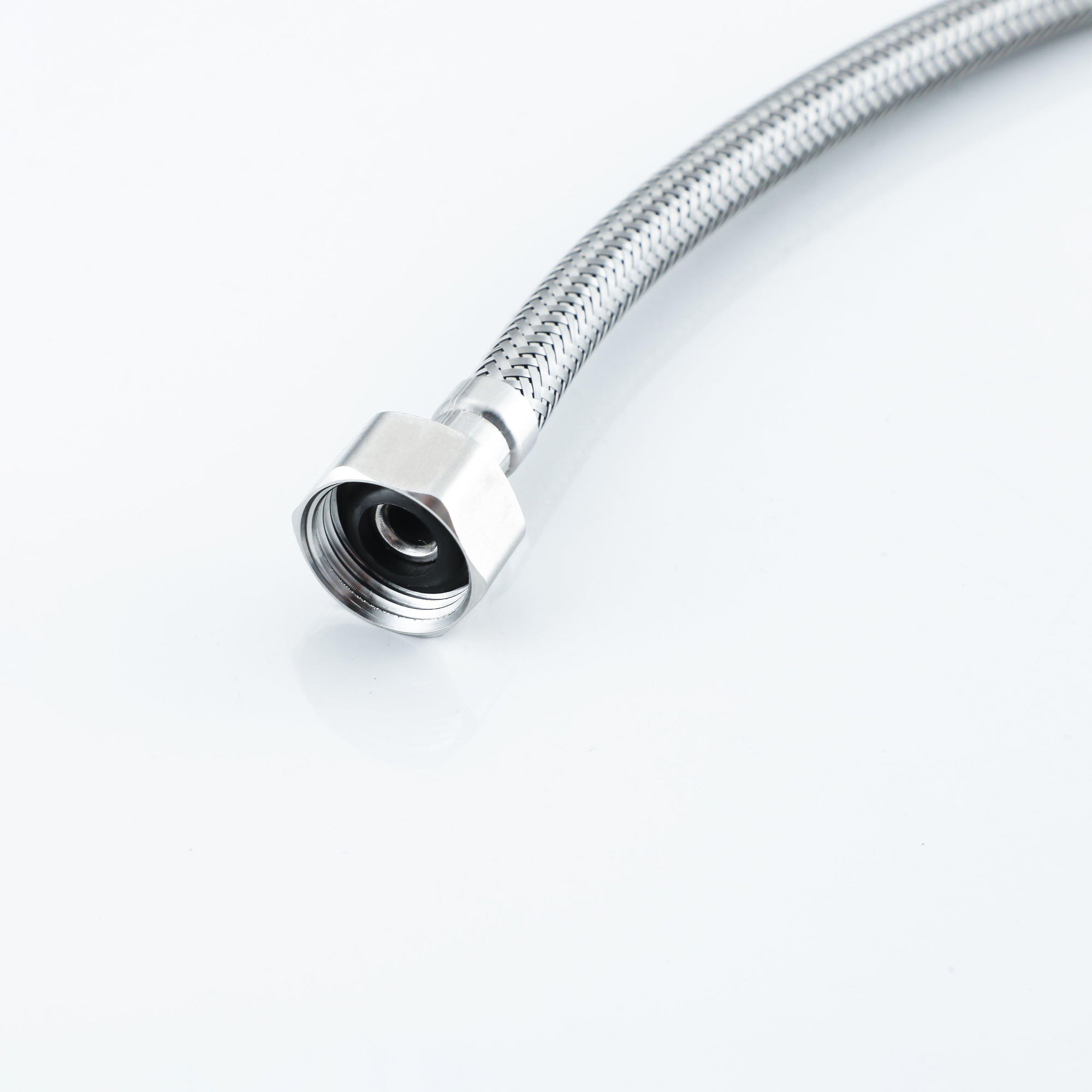 De Fortifura Calvi flexibele slang van 30 cm in geborsteld RVS is de perfecte keuze voor het betrouwbaar aansluiten van sanitair zoals een kraan, boiler of toilet. Deze flexibele slang is geschikt voor binnenshuis gebruik en biedt een efficiënte verbinding tussen bijvoorbeeld de stopkraan en de kraan in je wasbak. De geborsteld roestvrijstalen (RVS) afwerking voegt een strakke, moderne uitstraling toe aan je badkamer of keuken en is tegelijkertijd bestand tegen corrosie.Met een lengte van 30 cm en aan de ene kant een 3/8" binnendraad en aan de andere kant een 1/2" binnendraad (ook wel halfduims genoemd), biedt deze slang een universele en lekvrije aansluiting op diverse sanitairtoepassingen. Dankzij de flexibele structuur is de slang gemakkelijk te installeren, zelfs in lastige en krappe ruimtes.