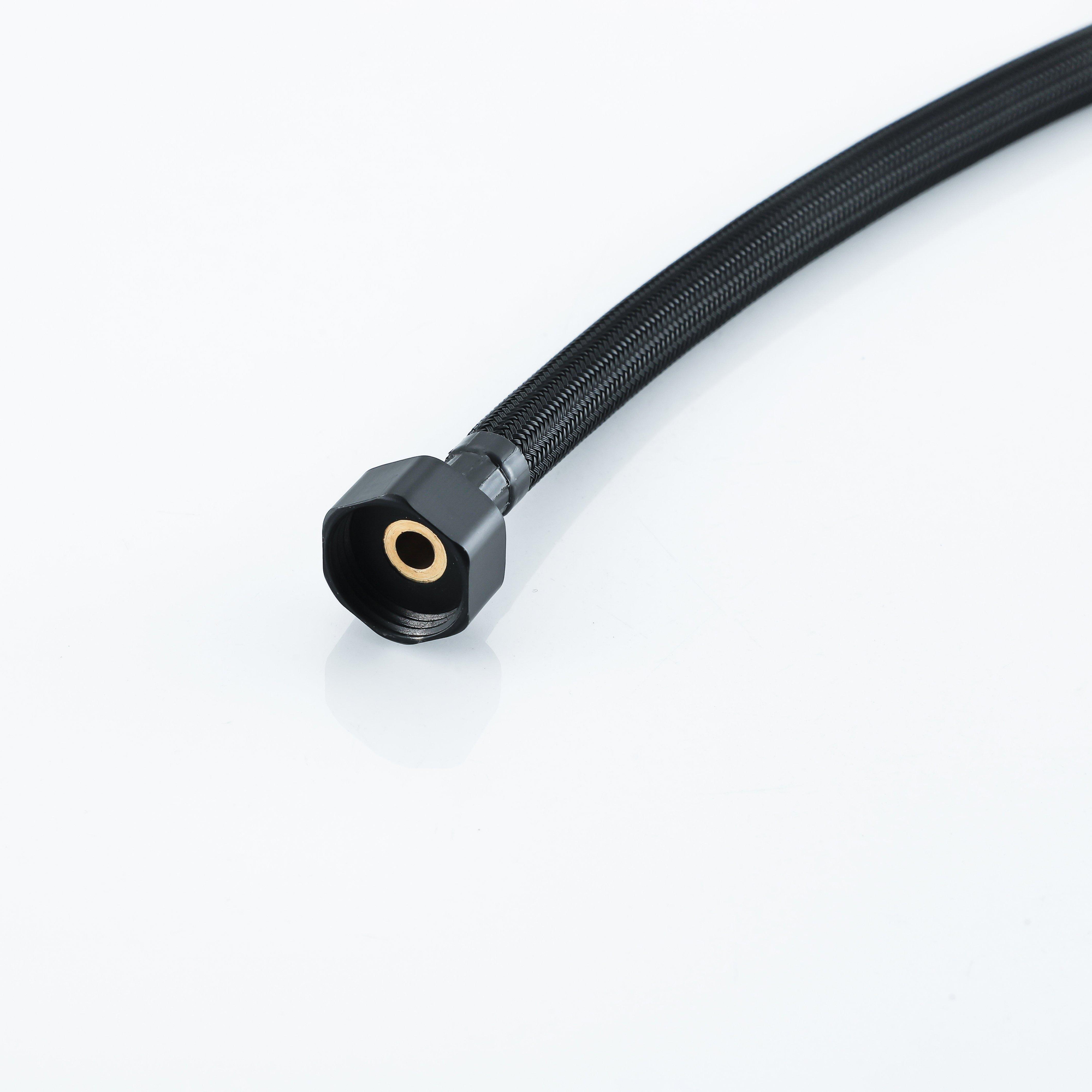 De mat zwarte afwerking geeft de slang een moderne uitstraling en biedt bescherming tegen corrosie, wat zorgt voor een lange levensduur. Hierdoor combineert de slang stijl met functionaliteit, ideaal voor dagelijks gebruik.