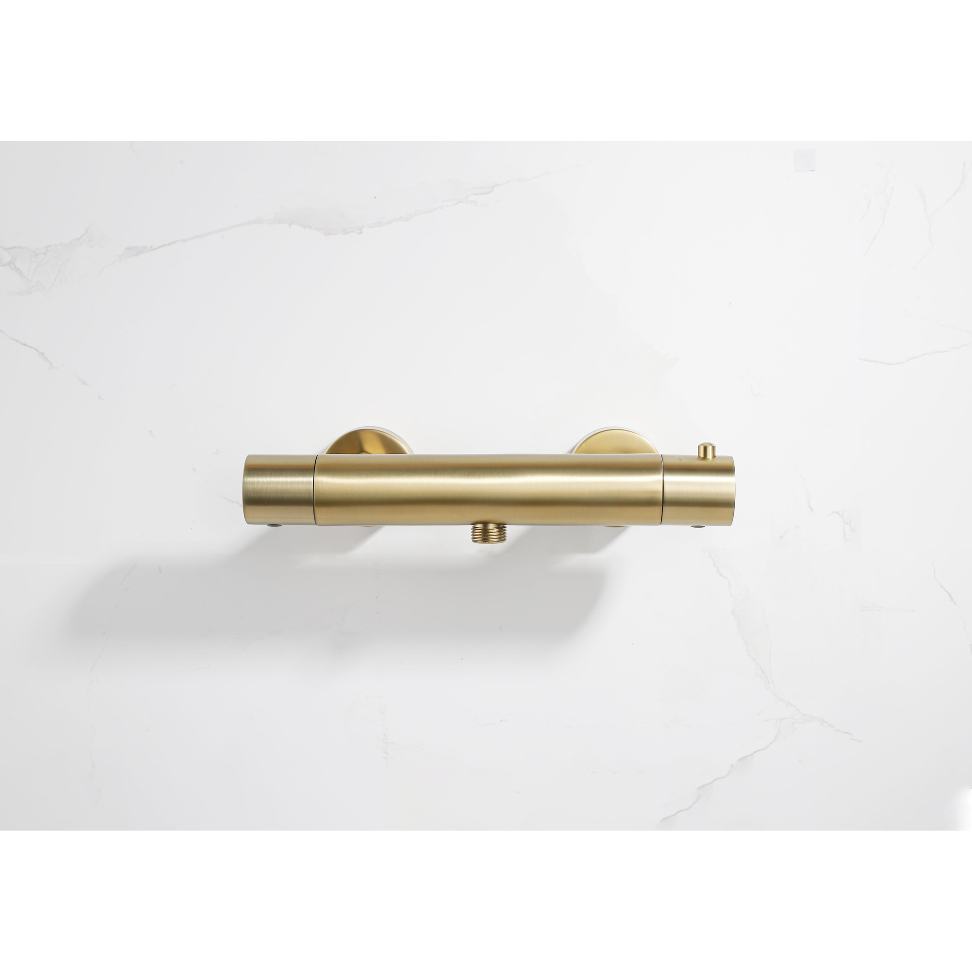 De Fortifura Calvi Thermostatische Douchekraan in opbouw is een prachtig vormgegeven toevoeging aan elke badkamer. Met zijn elegante ontwerp en hoogwaardige afwerking van geborsteld messing PVD, straalt deze douchekraan luxe en stijl uit. Niet alleen is het een visueel aantrekkelijk element, maar het biedt ook functionaliteit en comfort, waardoor je dagelijkse douche-ervaring naar een hoger niveau wordt getild.