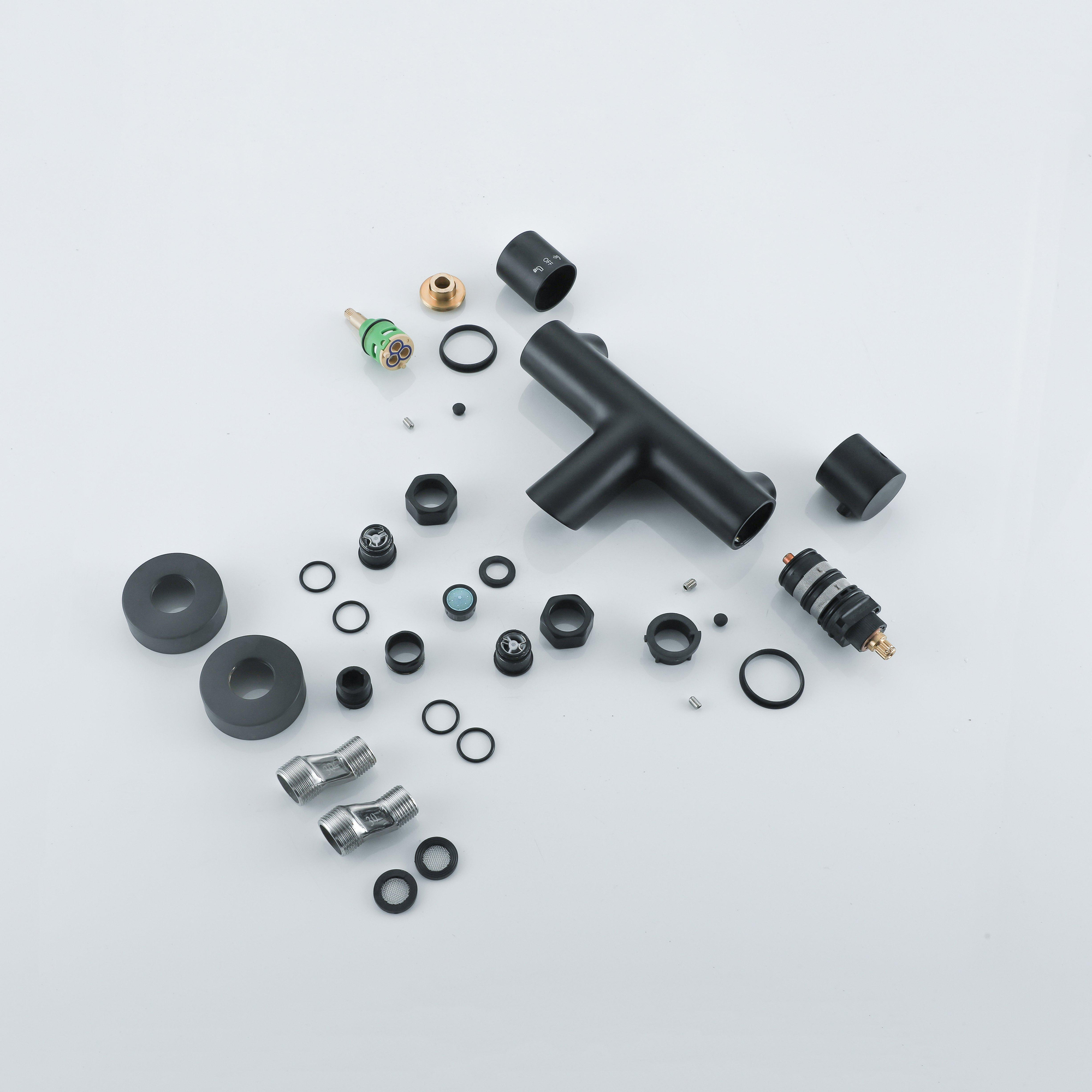 De Fortifura Calvi thermostatische badkraan is ontworpen met oog voor stijl en elegantie. Het matte zwarte afwerking geeft een eigentijdse uitstraling aan de kraan, waardoor het een echte blikvanger wordt in jouw badkamer. De strakke lijnen en moderne vormgeving zorgen voor een tijdloos design dat perfect past bij diverse badkamerstijlen.